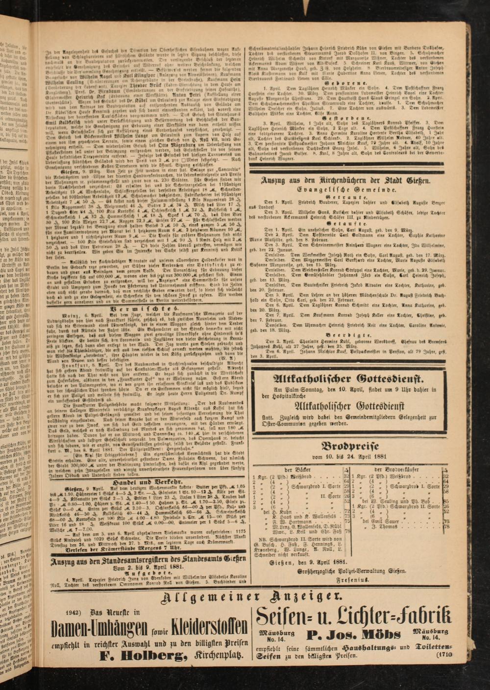 Den 2. April. Dem PostseeretLr Lari Goldmann eine Tochter, Sophie Katharine Mar e Mathilde, geb. den 8. Februar