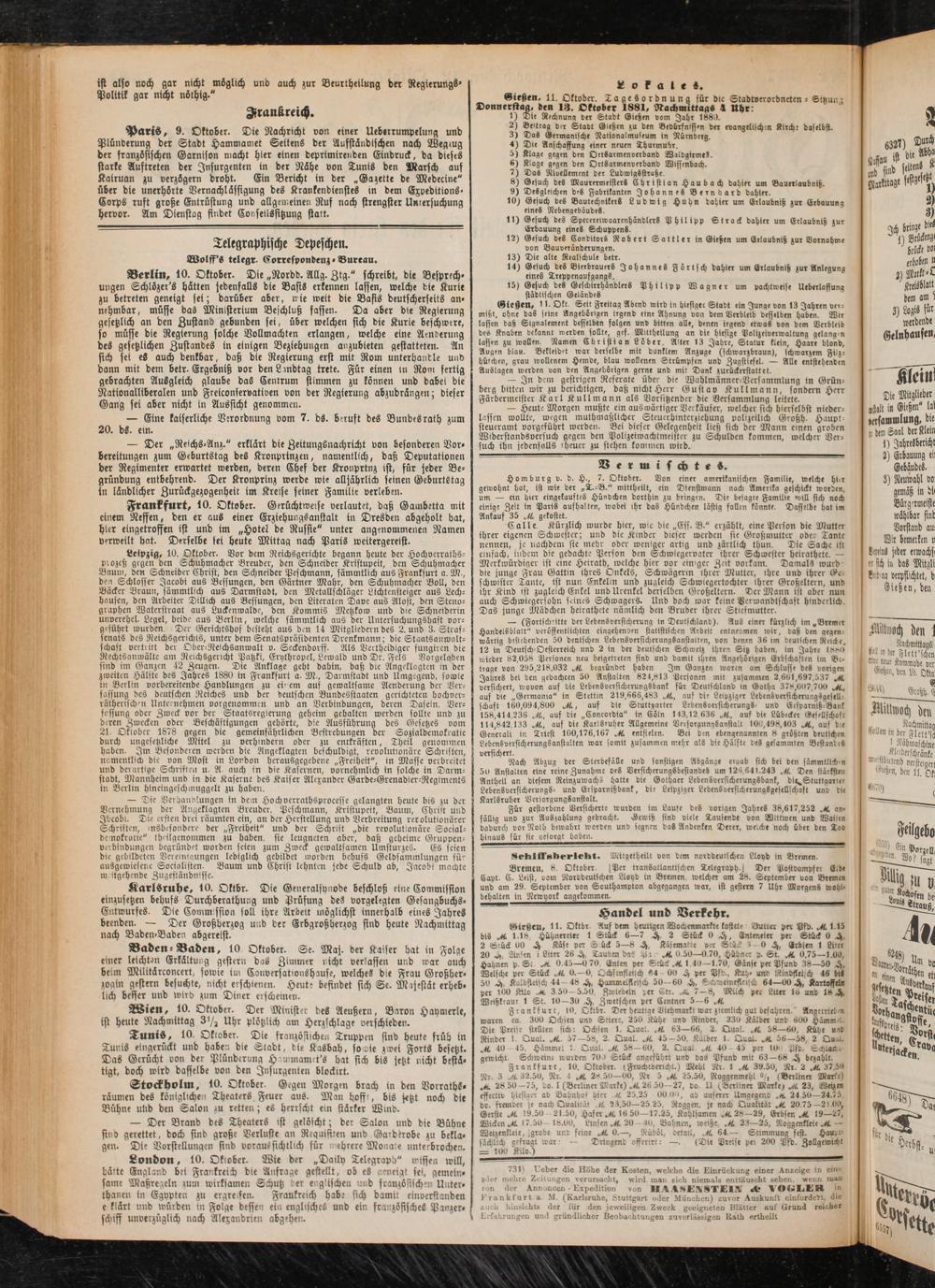 Gießen, 11. Oktober. Tagesordnung für die Stabtverorbncten - Sitzung Donnerftag, den 13. Oktober 1881, Nachmittags 4 Uhr: