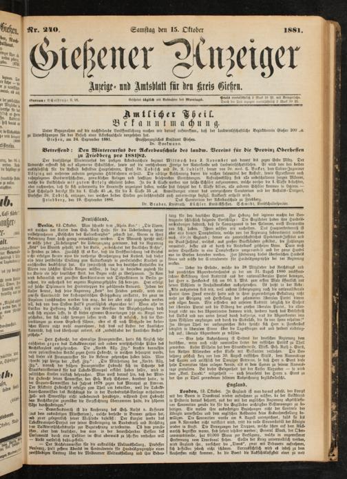 Gießen, am 24. September 1881. Großherzogliche- threilamt Gießen.