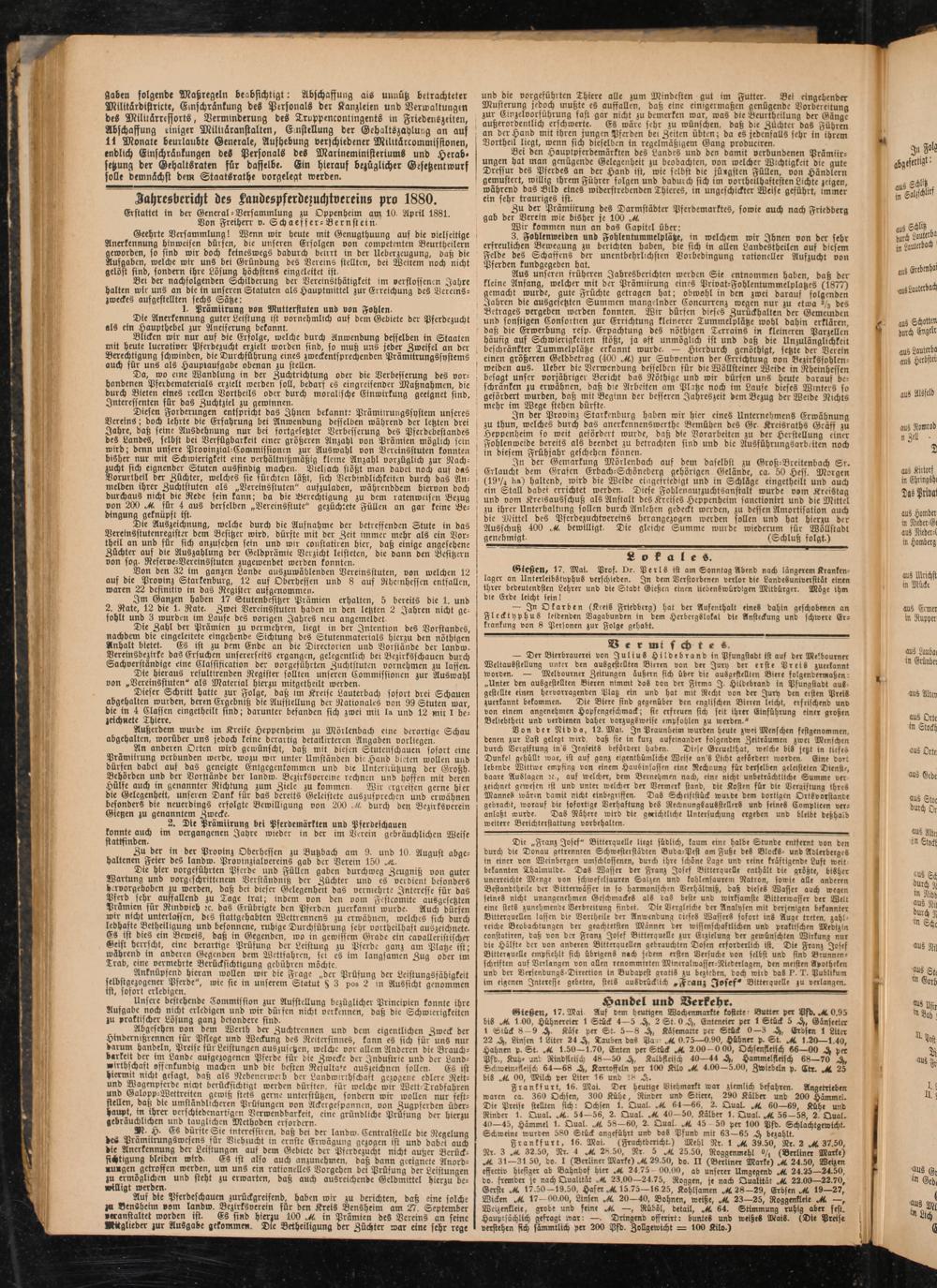 Zu der Prämiirung des Darmstädter Pferdemarktes, sowie auch nach Fttedberg gab der Verein wie bisher je 100 X