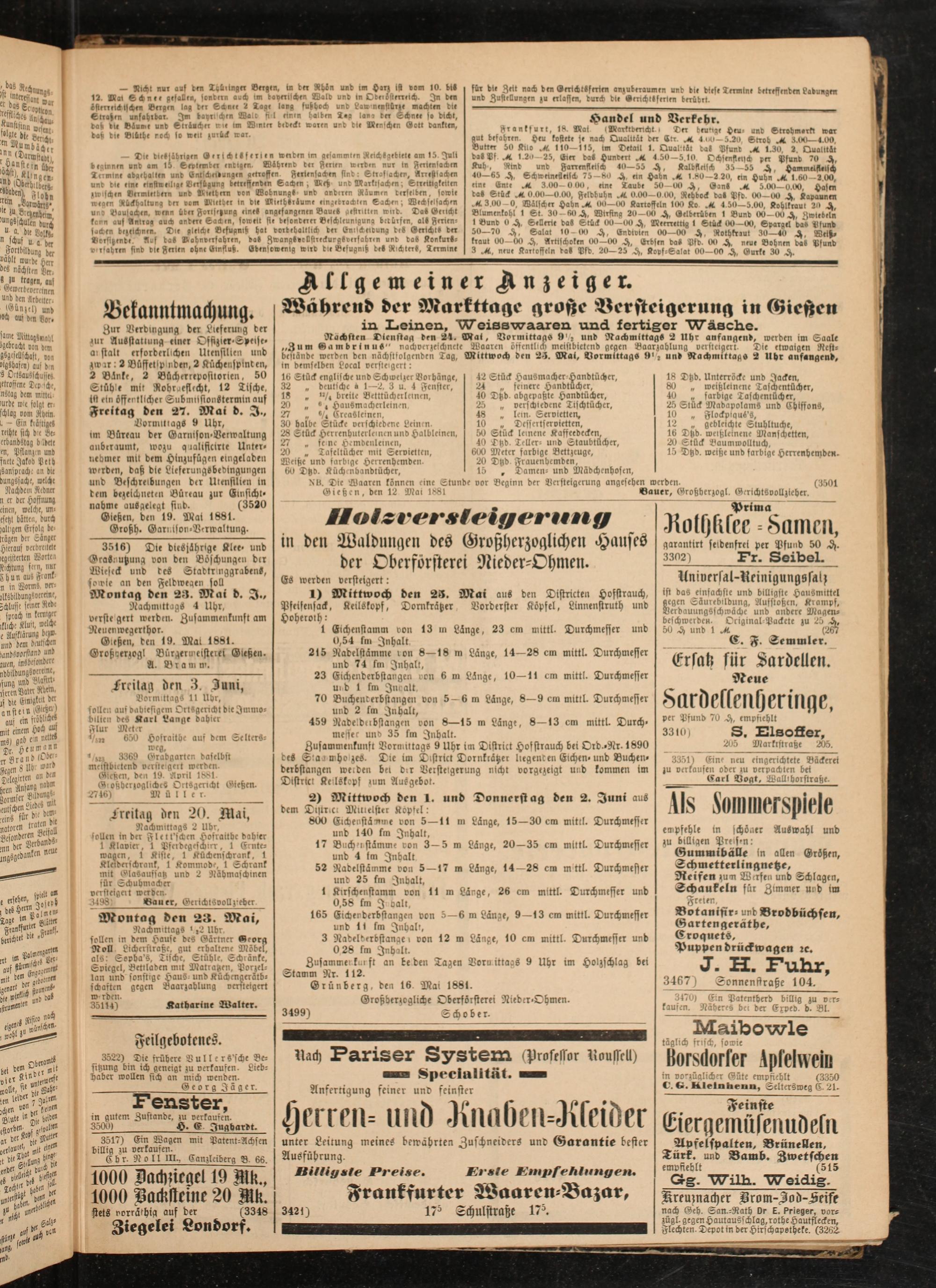 Gteßen, den 19. Mai 1881. Großirerzogl Bürgermeisterei Gießen. Ä. Bramw.