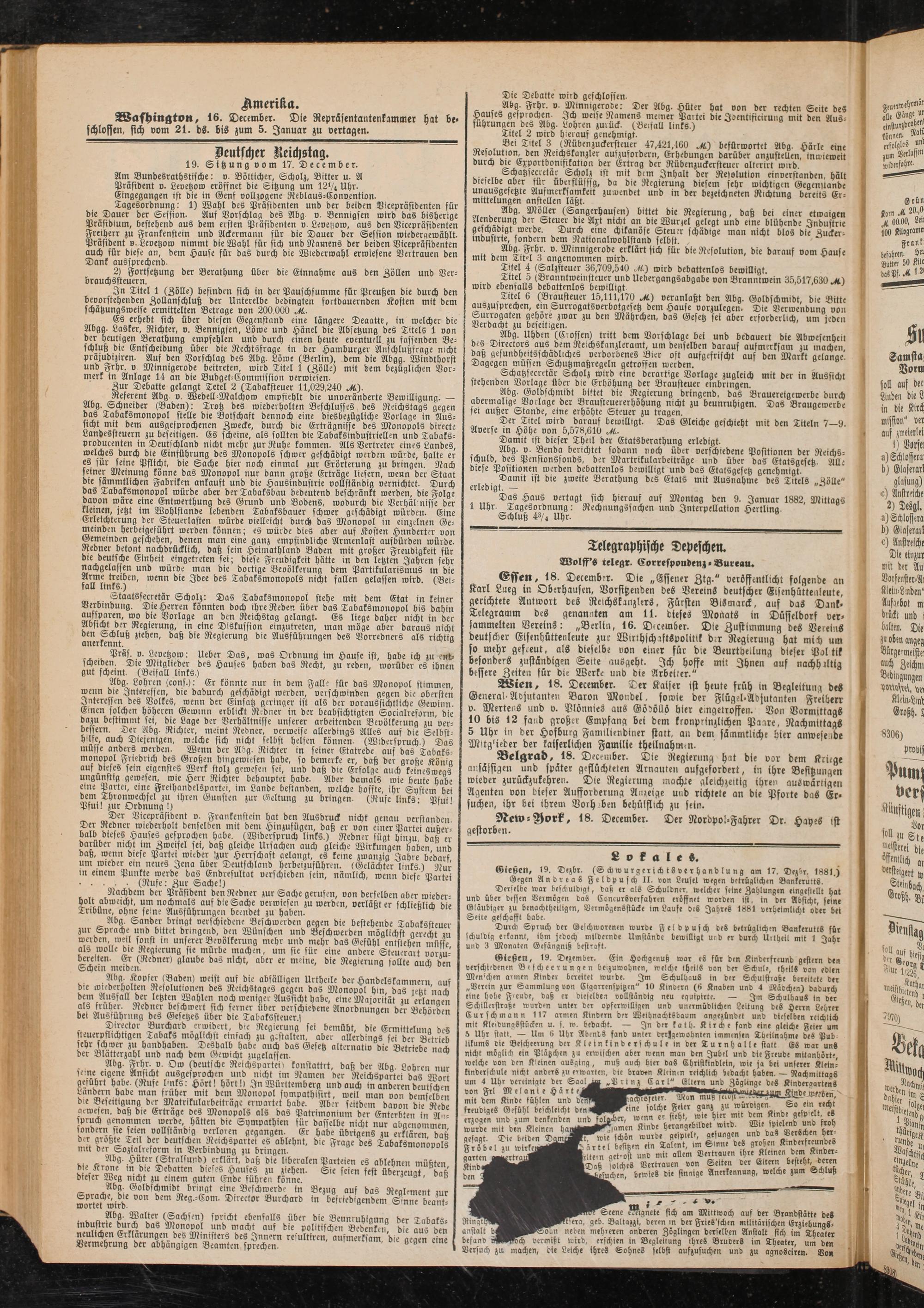 Gießen, 19. Dezbr. (Scbwurgericktsverhandlung am 17. Dezbr. 1881.) ®egcn Andreas Feldpusch II. von Leusel wegen bctrüglichen Bankerutts.