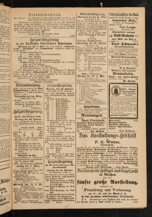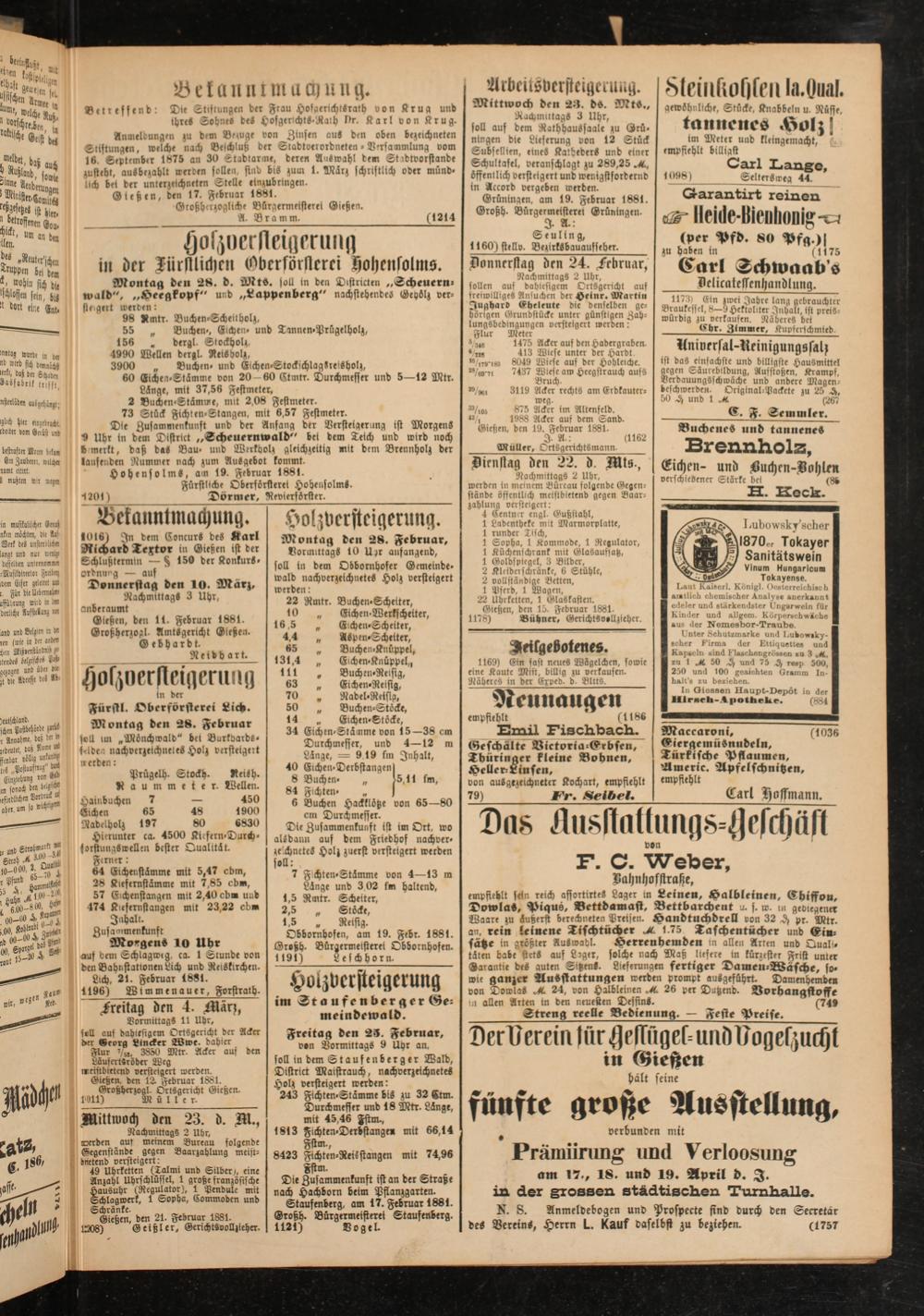 Gießen, den 15. Februar 1881. 1178) Bühner, Gerichtsvollzieher.