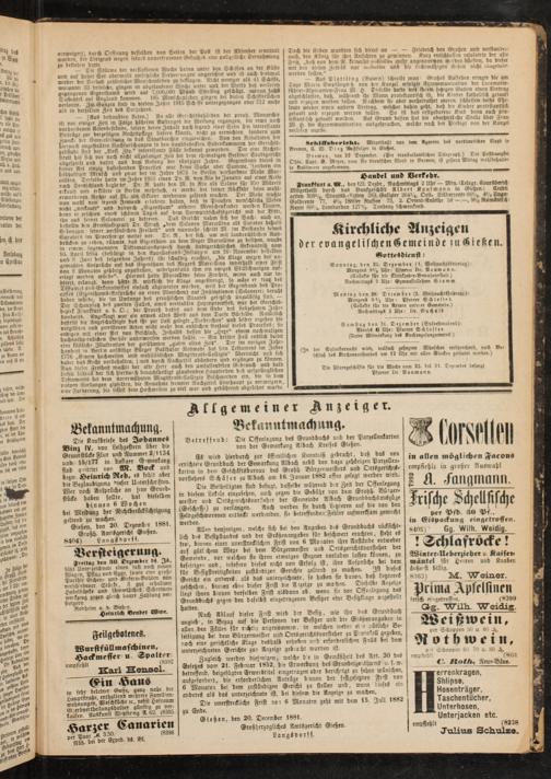 Gießen, den 20. Dezemb r 1881. Großh- Amtsgericht G'eßen.