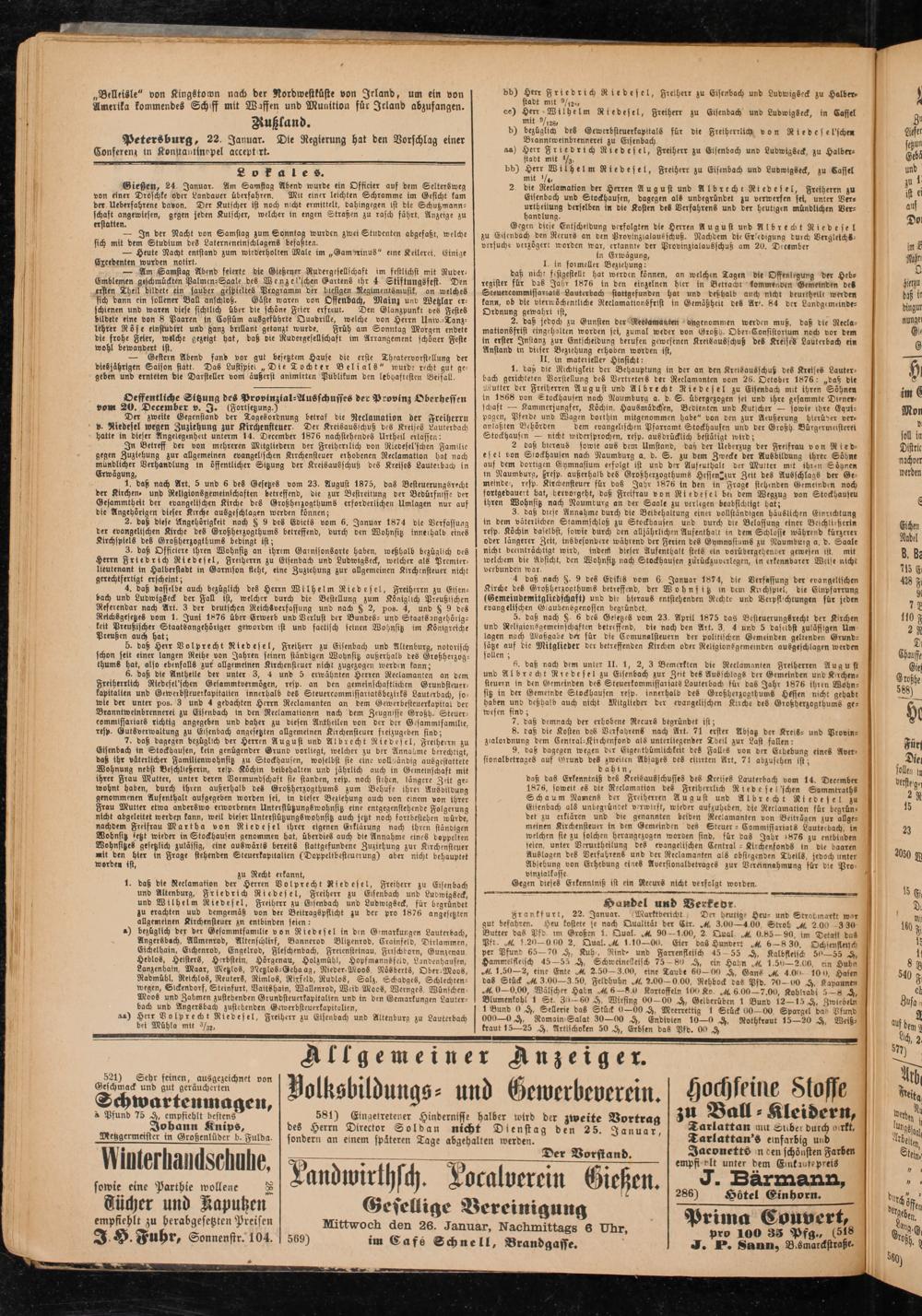581) Eingetretener Hinderntffe halber wird der zweite Vortrag des Herrn Director Soldan nicht Dienstag den 25. Januar, sondern an einem späteren Tage abgehalten werden.