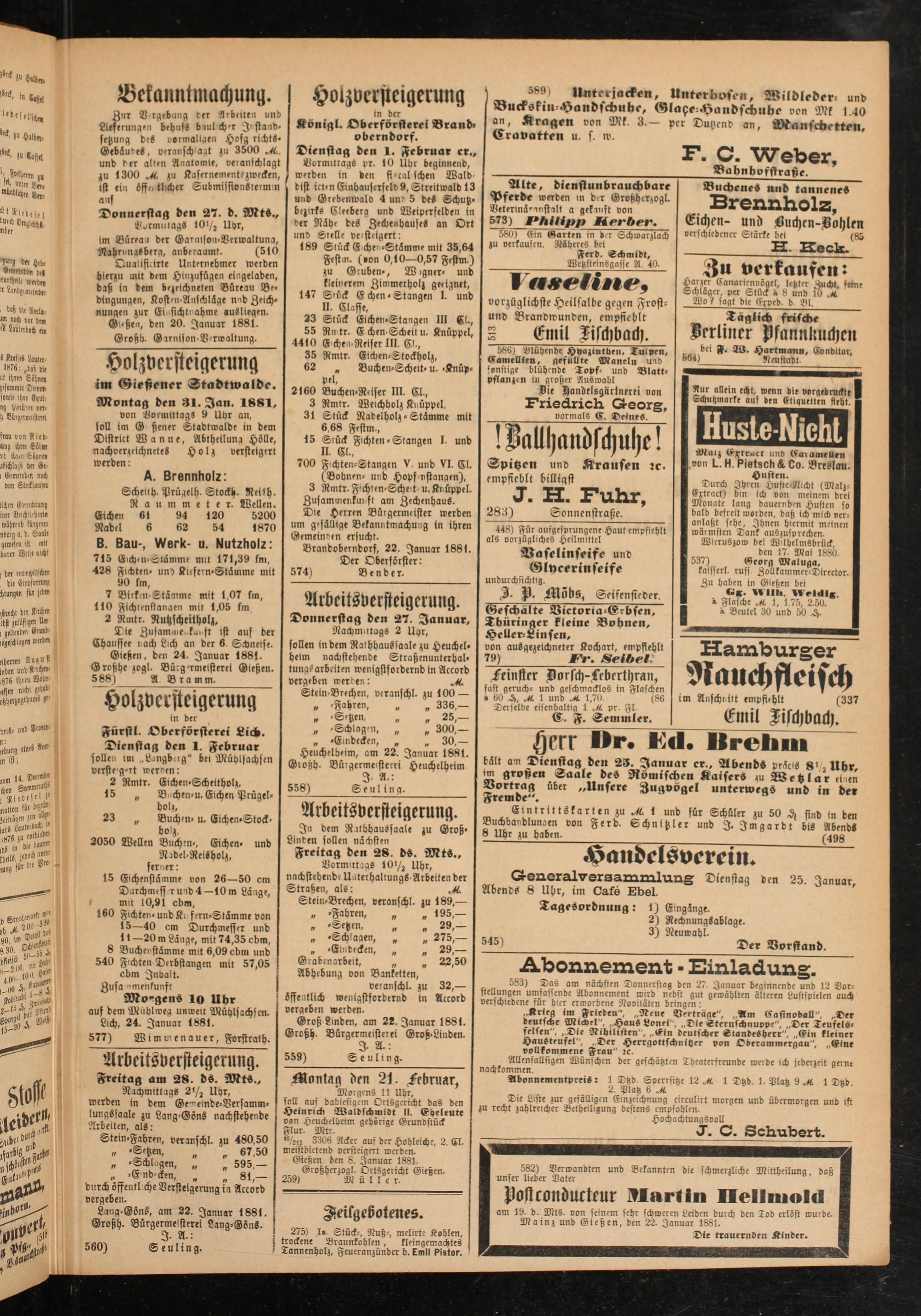 Gießen den 8. Januar 1881. Großherzogl. Ortsgericht Gießen. 259) M ü l l e r.