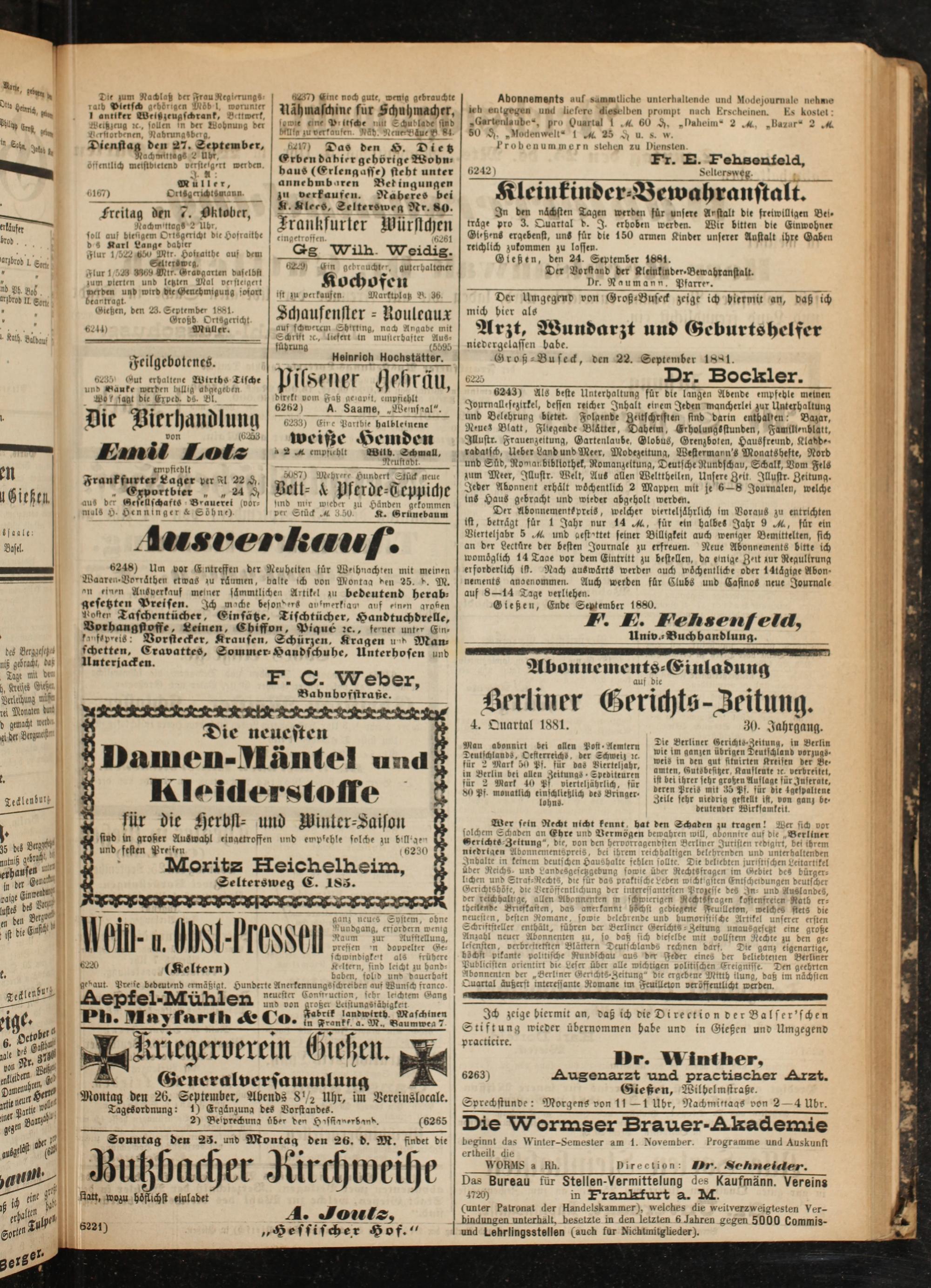 Gießen, den 23. September 1881.