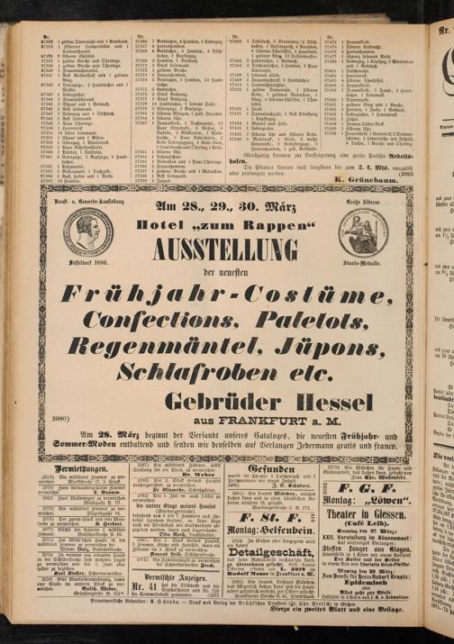 Am 28 März beginnt der Versandt unseres Cataloqes, die neuesten Frühjahr- und Sommer-Moden enthaltend und senden wir denselben auf Verlangen Jedermann gratis und franco.