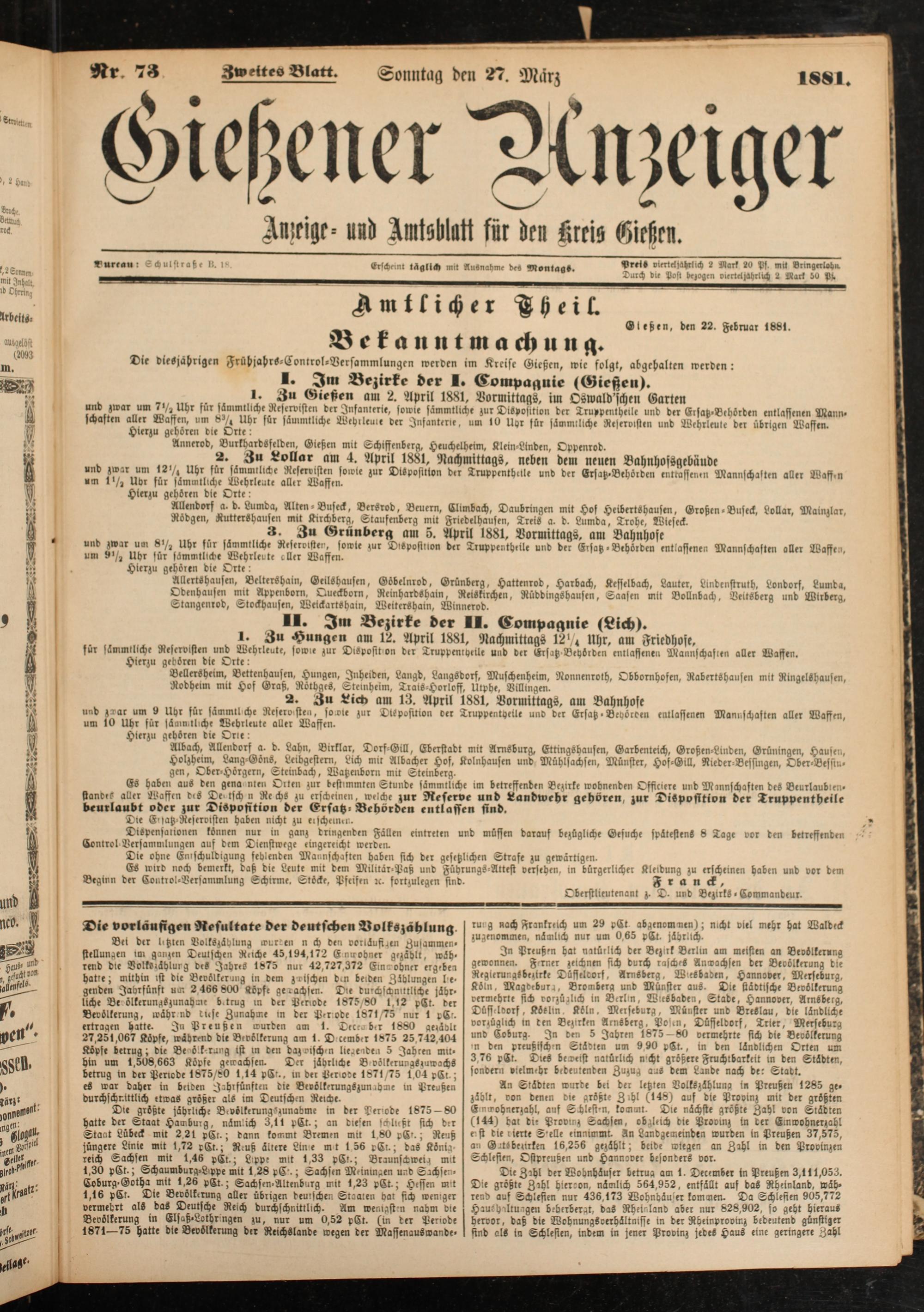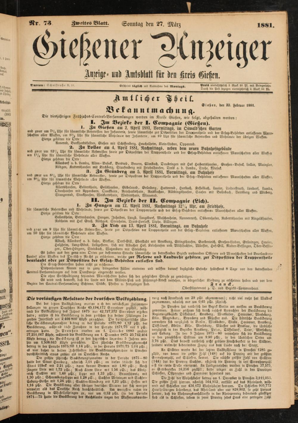 . „ 1* 3« Gießen am 2. April 1881, Vormittags, im Oswald'schen Gartrn