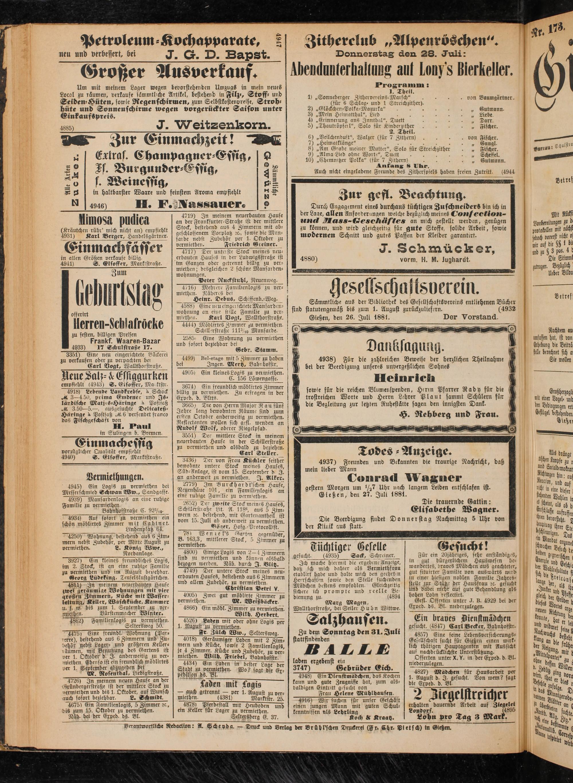 Gießen, den 26. Juli 1881. Der Vorstand.