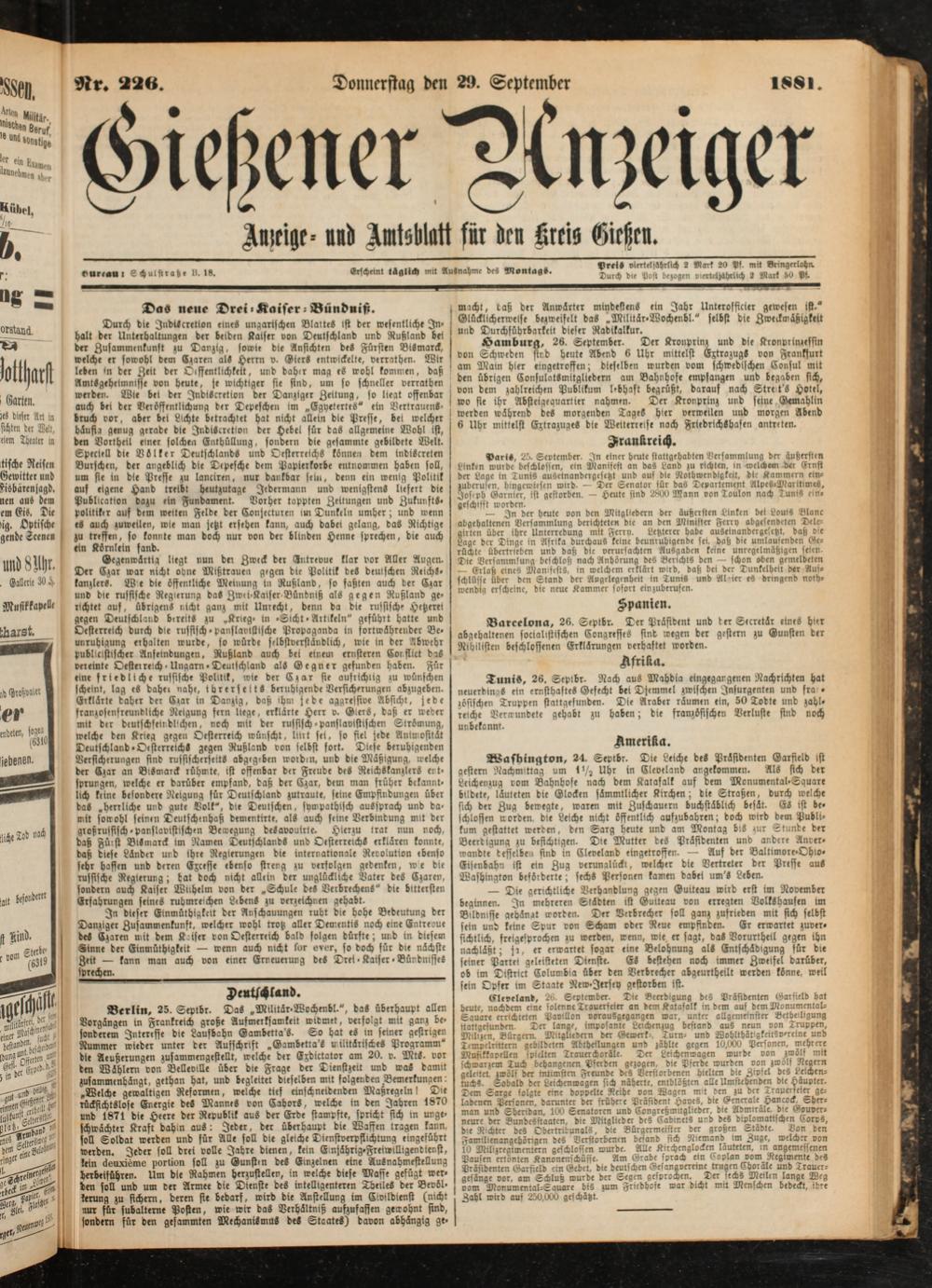 Nr. 22« Donnerstag den 29. September 1S81.