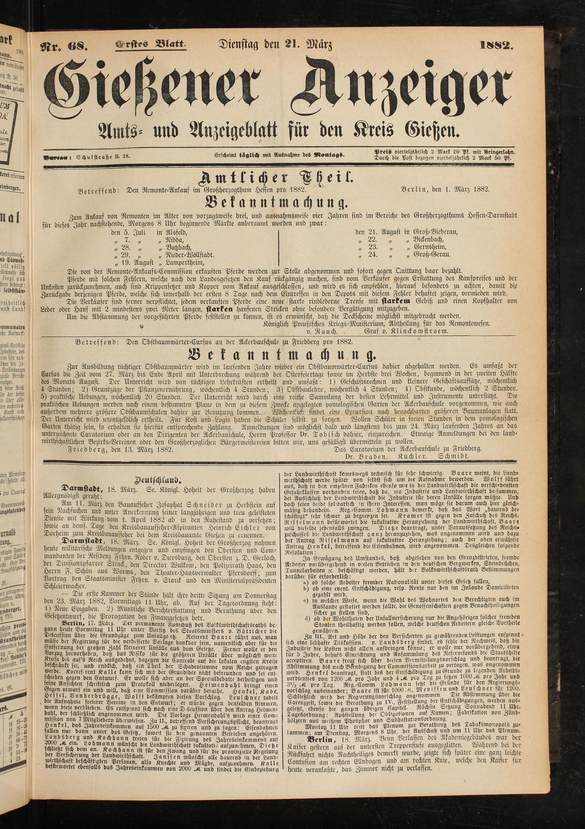 9^r. 68. Grft-s Blatt. Dienstag den 21. März
