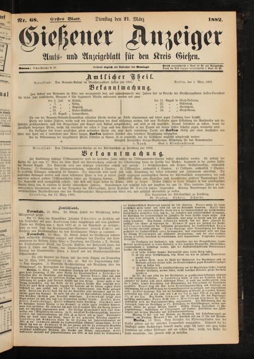 Amts- und Anzcigeblatt für den Kreis Gießen.