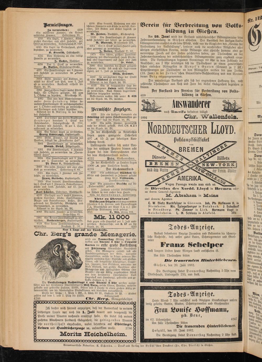 Verantwortliche Nedaction: A. Schenda. — Druck und Verlag der Vrühl'schcn Druckerei (Fr. Ehr. Pietsch) in Gießen.