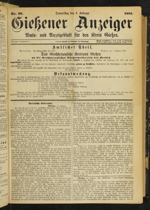 Gießen, am 29. Januar 1883. Großherzoglicheü Polizeiamt Gießen.
