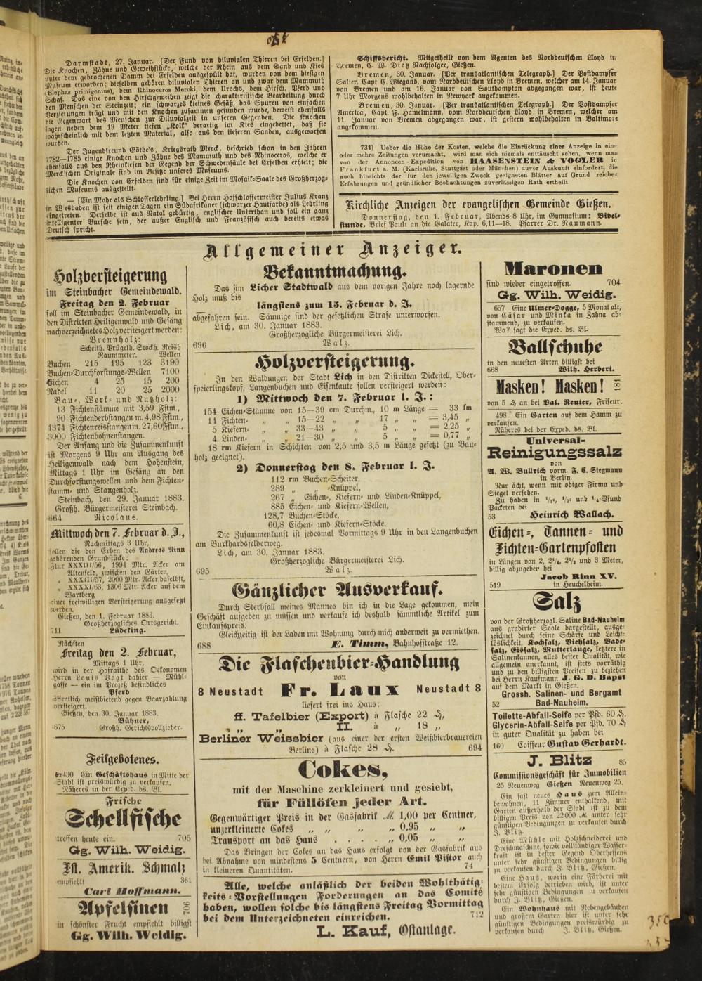 Gießen, den 1. Februar 1883. Großherzogliches Ortsgericht.