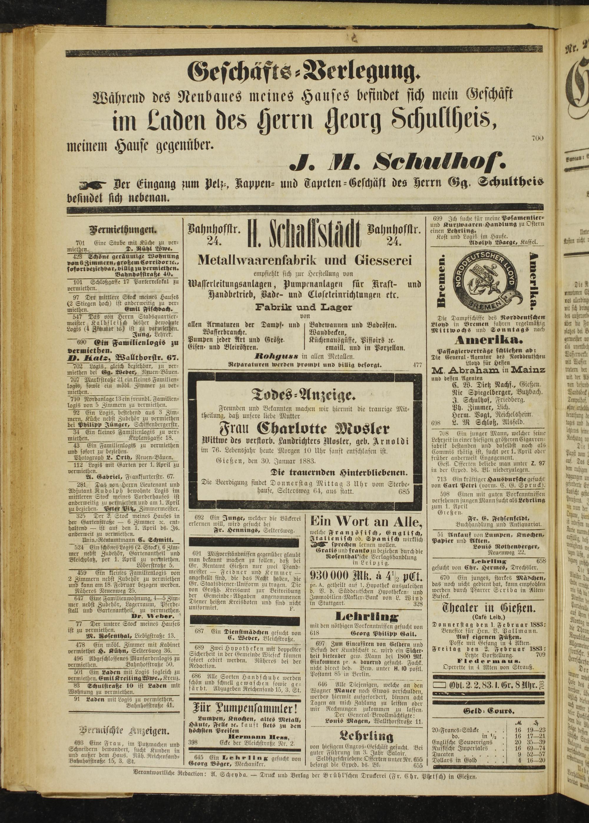 Verantwortliche Redaction: A. Scheyda. — Druck und Verlag der Brühl'schen Druckerei (Fr. Ehr. Putsch) in Gießen.