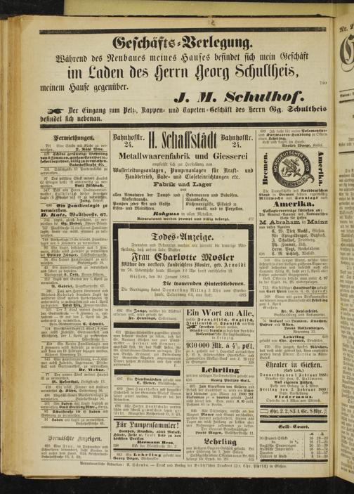 C. W. Dietz Nachs., Gießen. Nie Spiegelberger, Butzbach. I. Schulhof, Friedberg.