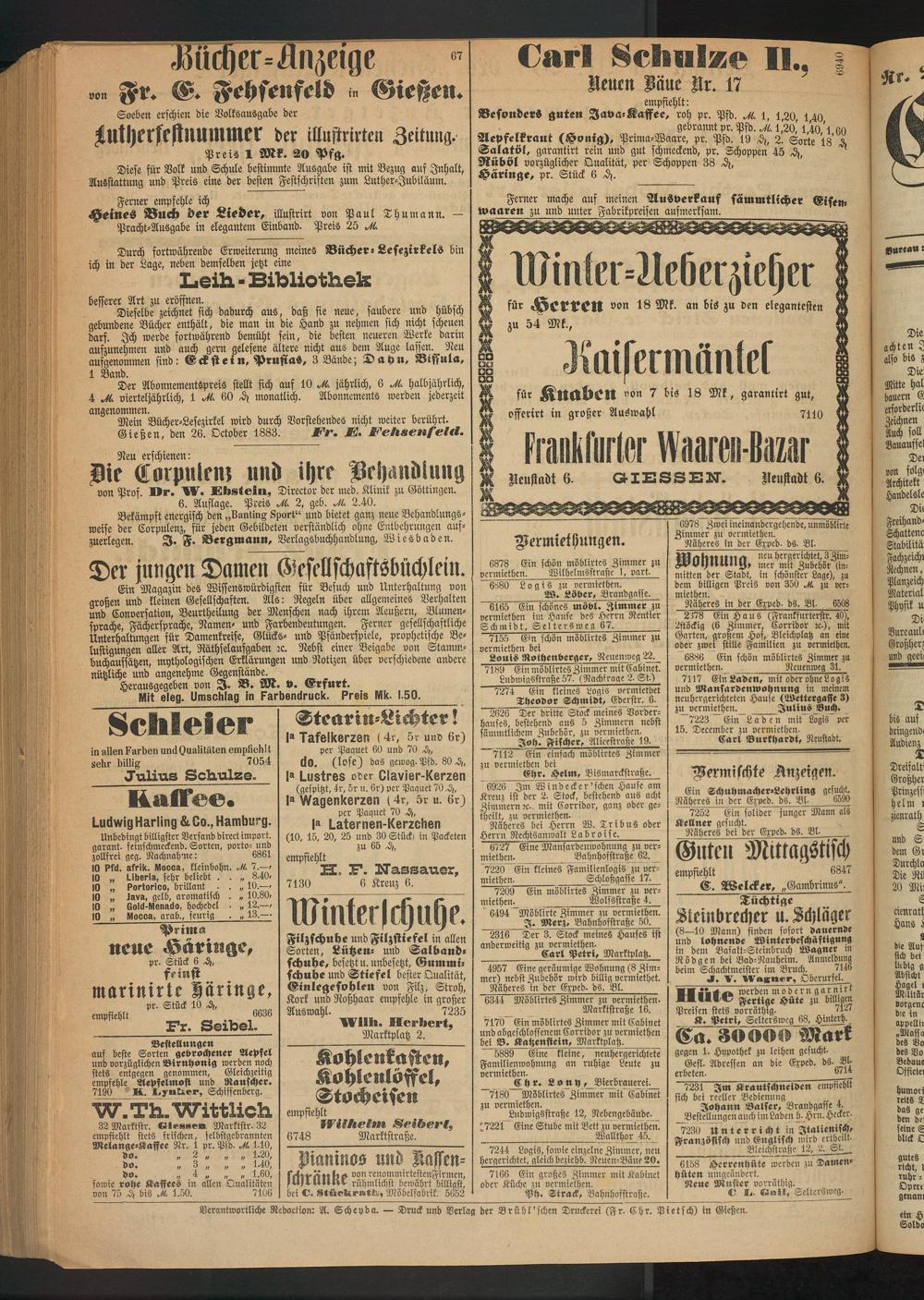 Gießen, den 26. October 1883. Er. E. Eehsenfeld.
