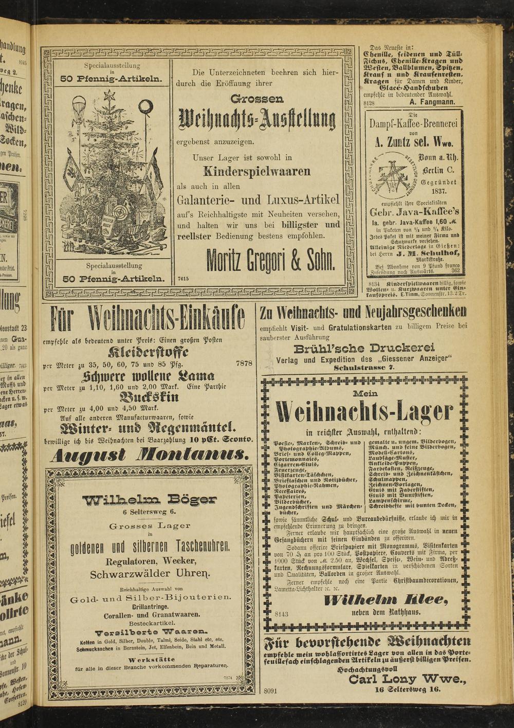 Galanterie- und Luxus-Artikel aufs Reichhaltigste mit Neuheiten versehen, und halten wir uns bei billigster und reellster Bedienung bestens empfohlen.