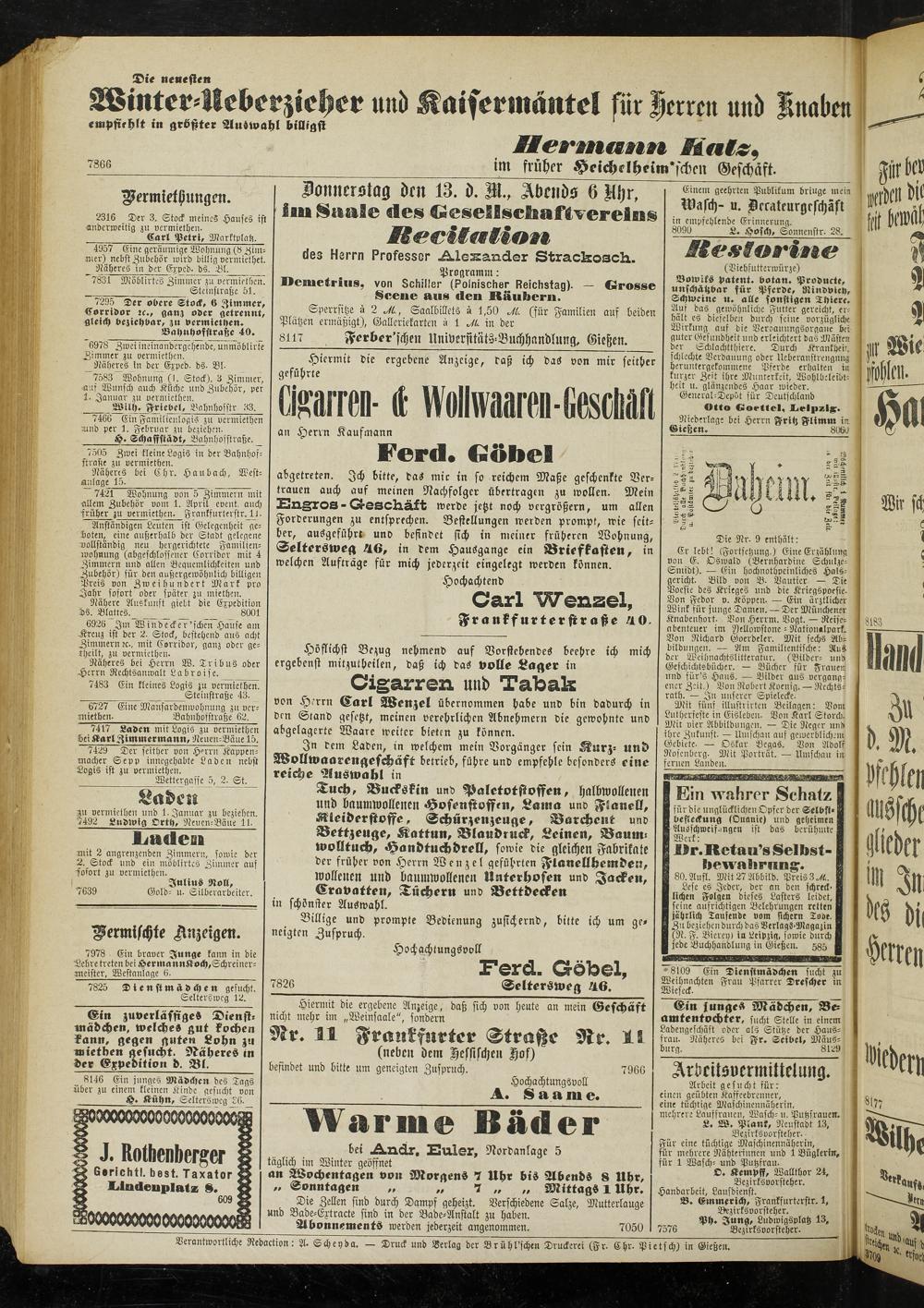 Verantwortliche Redaction: A- Scheyda. — Druck und Verlag der Brühl'schen Druckerei (Fr. Ehr. Pietsch) in Gießen.