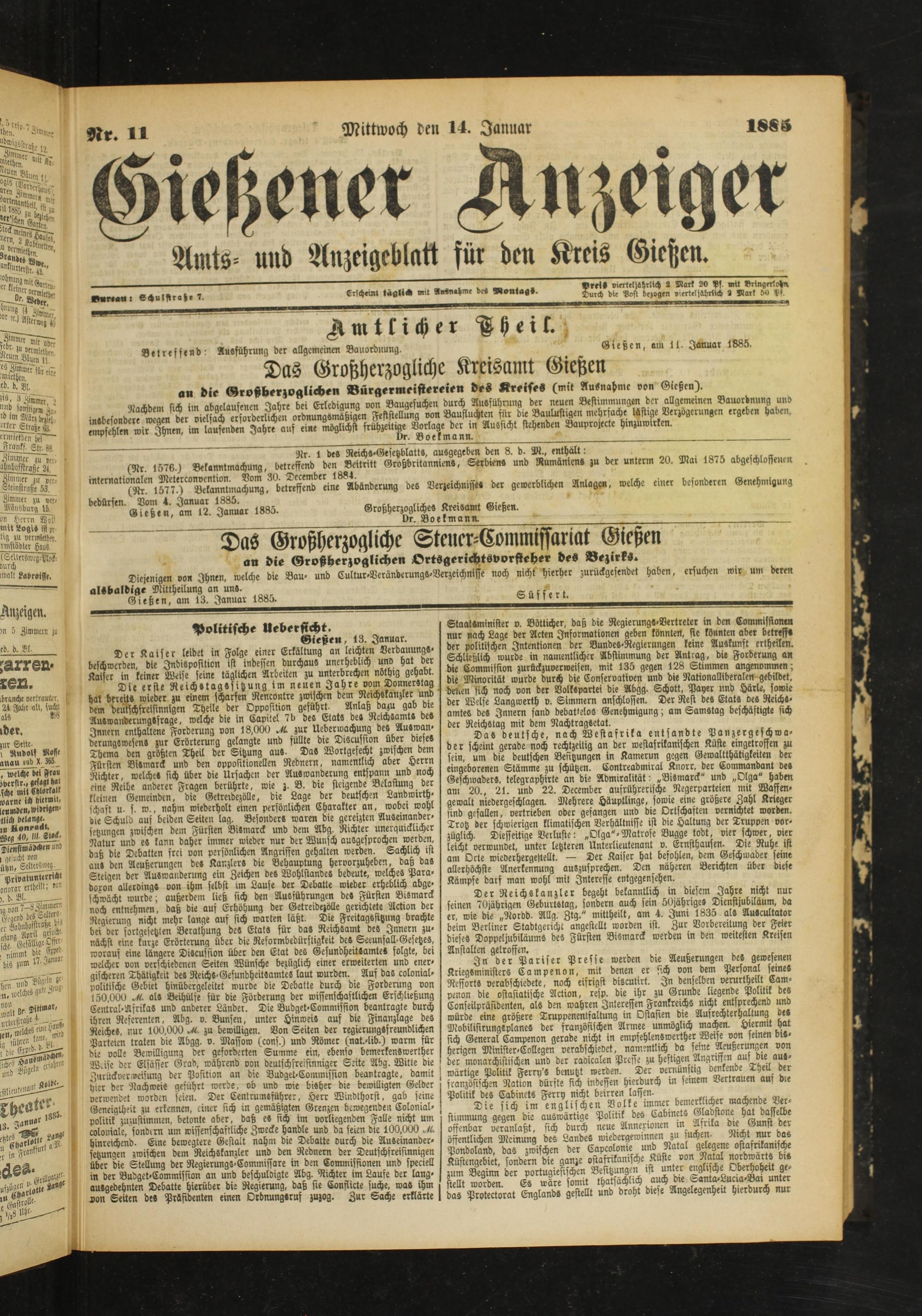 al-baldige Mittheilung an und. Gießen, am 13. Januar 1885.