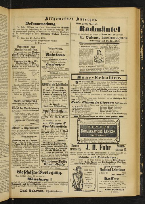 Donnerstag den 29. October 1885, Nachmittags 2V4 Uhr, findet der