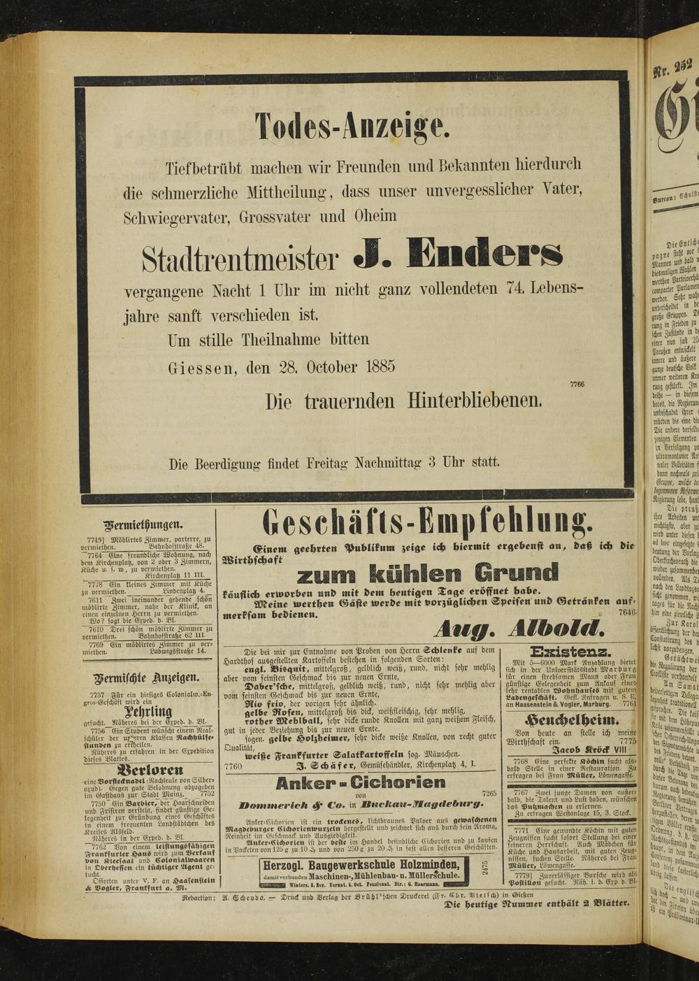 Näheres in der Exped- d- Bl.