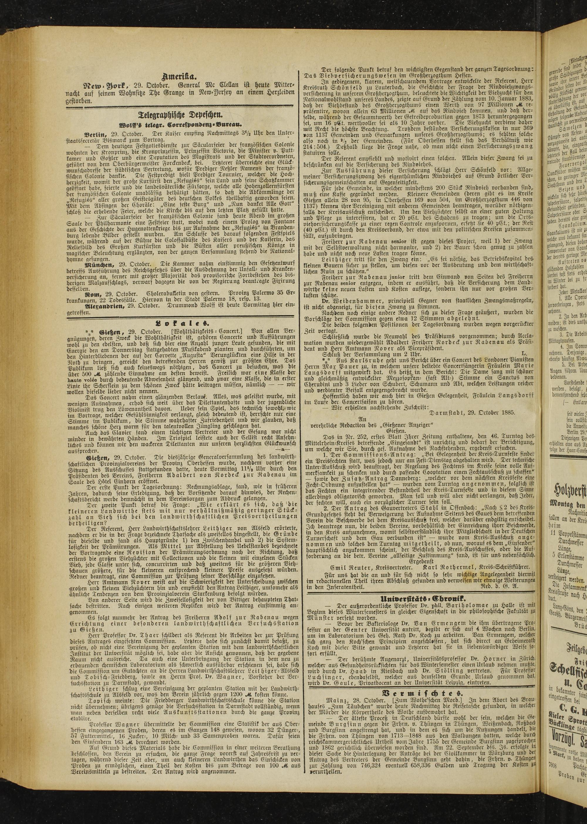 New Bork, 29. October. General Mc Clellan ist heute Mitternacht auf seinem Wohnsitze The Grange in New.Yersey an einem Herzleiden gestorben. _________________________________________________