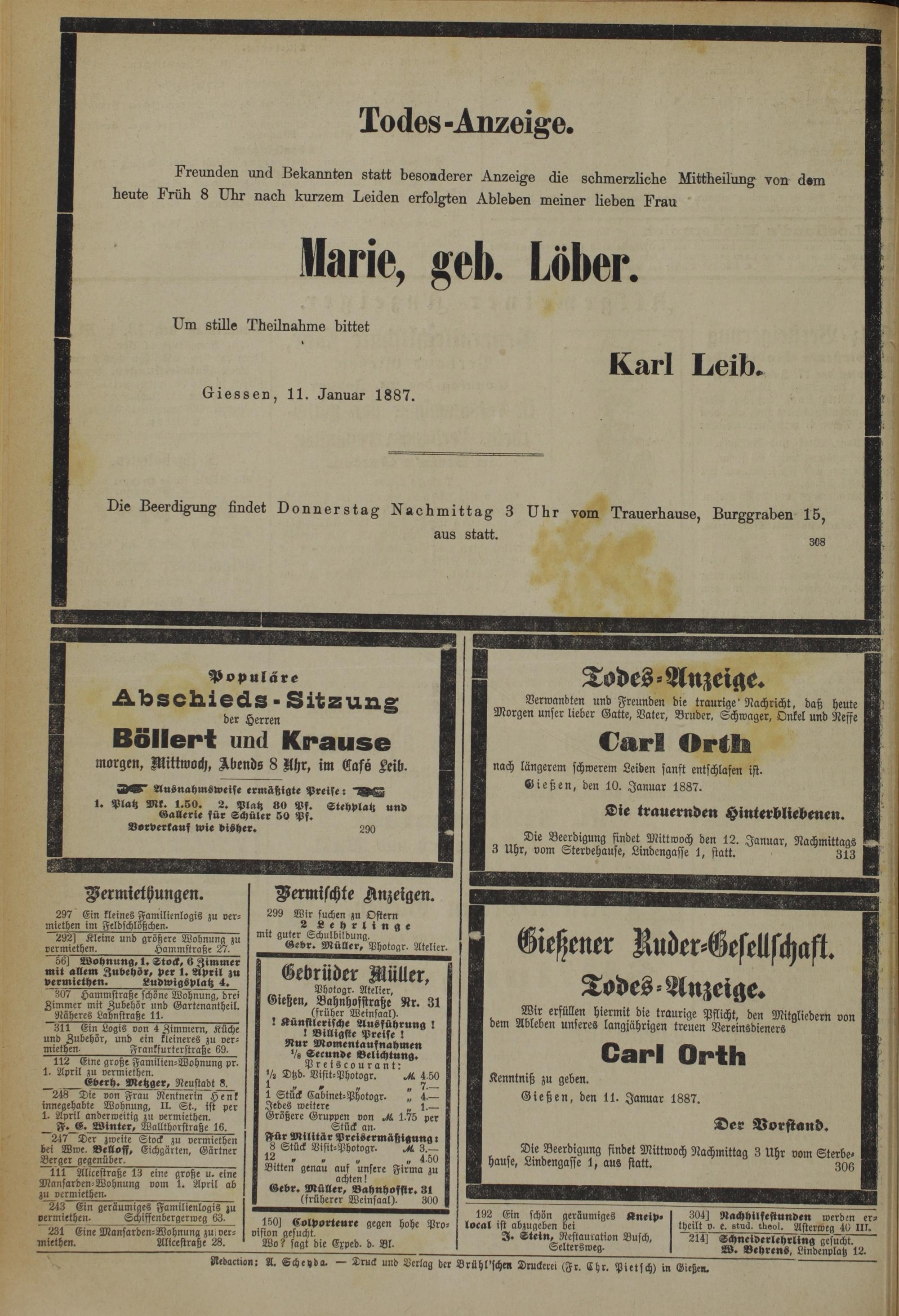 Giessen , 11. Januar 1887.