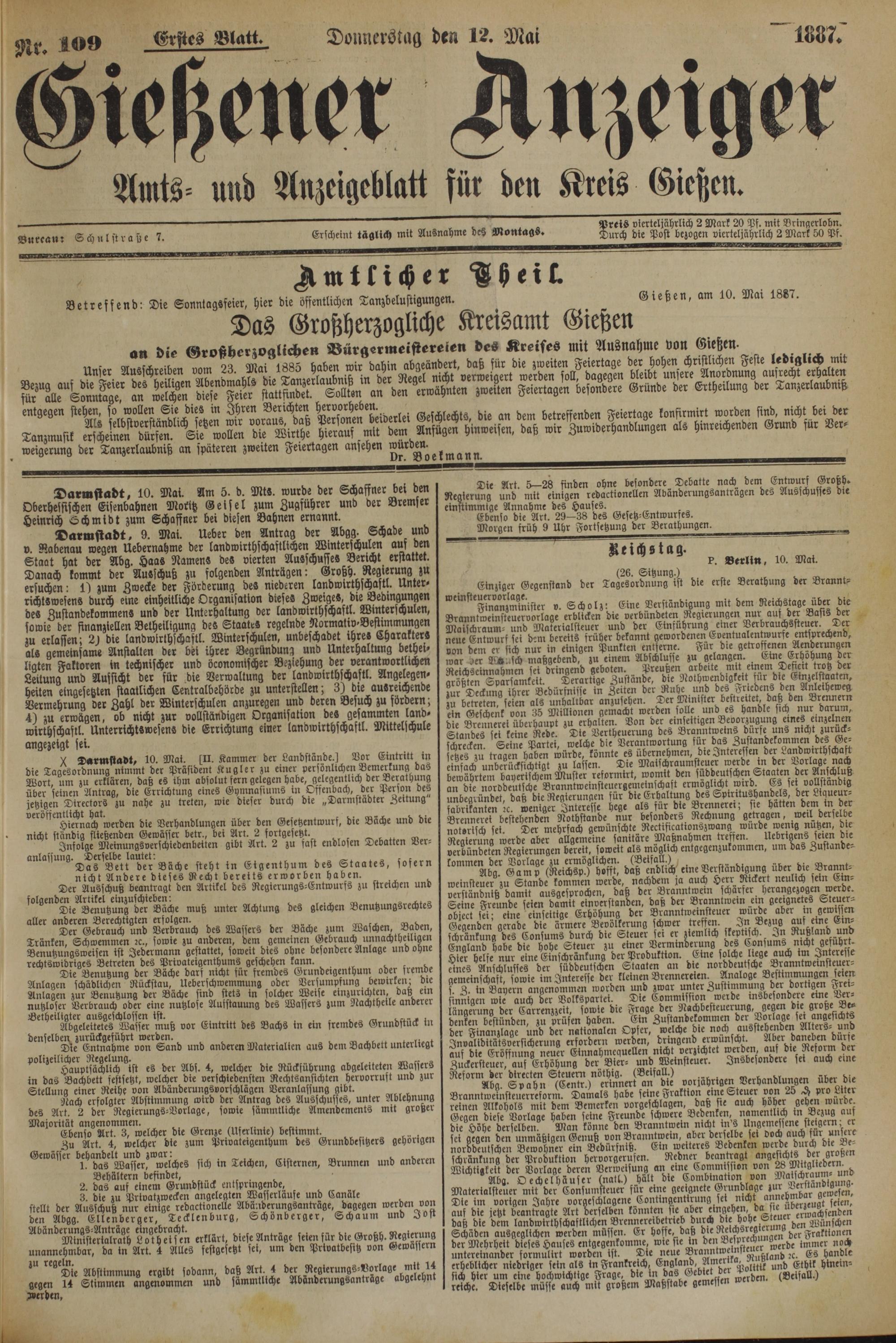 jftr. 109 Erstes Blatt. Donnerstag den 12. Mai 1887.