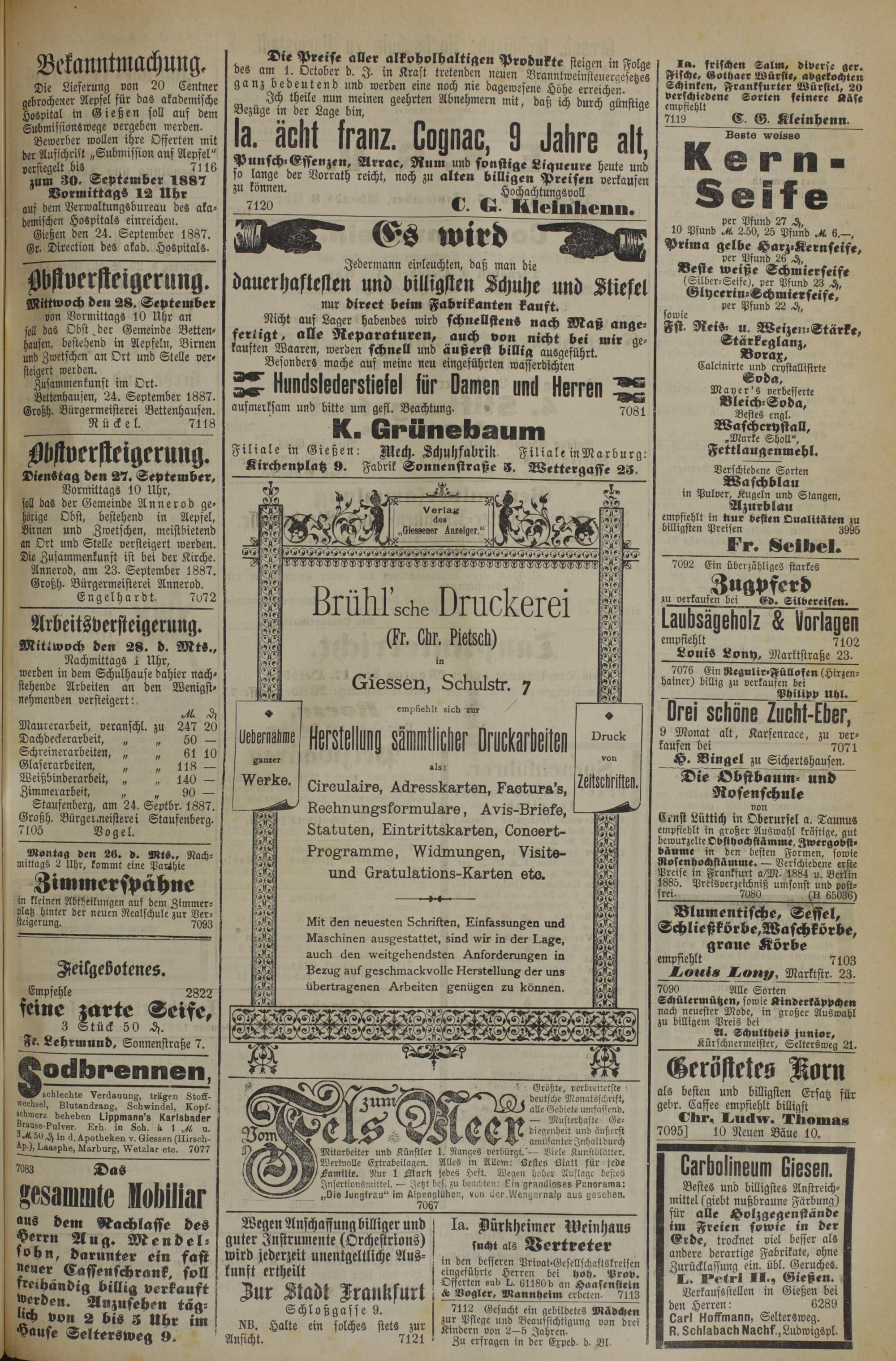 Staufenberg, am 24. Septbr. 1887. Großh. Bürgermeisterei Staufenberg. 7105 Vogel.