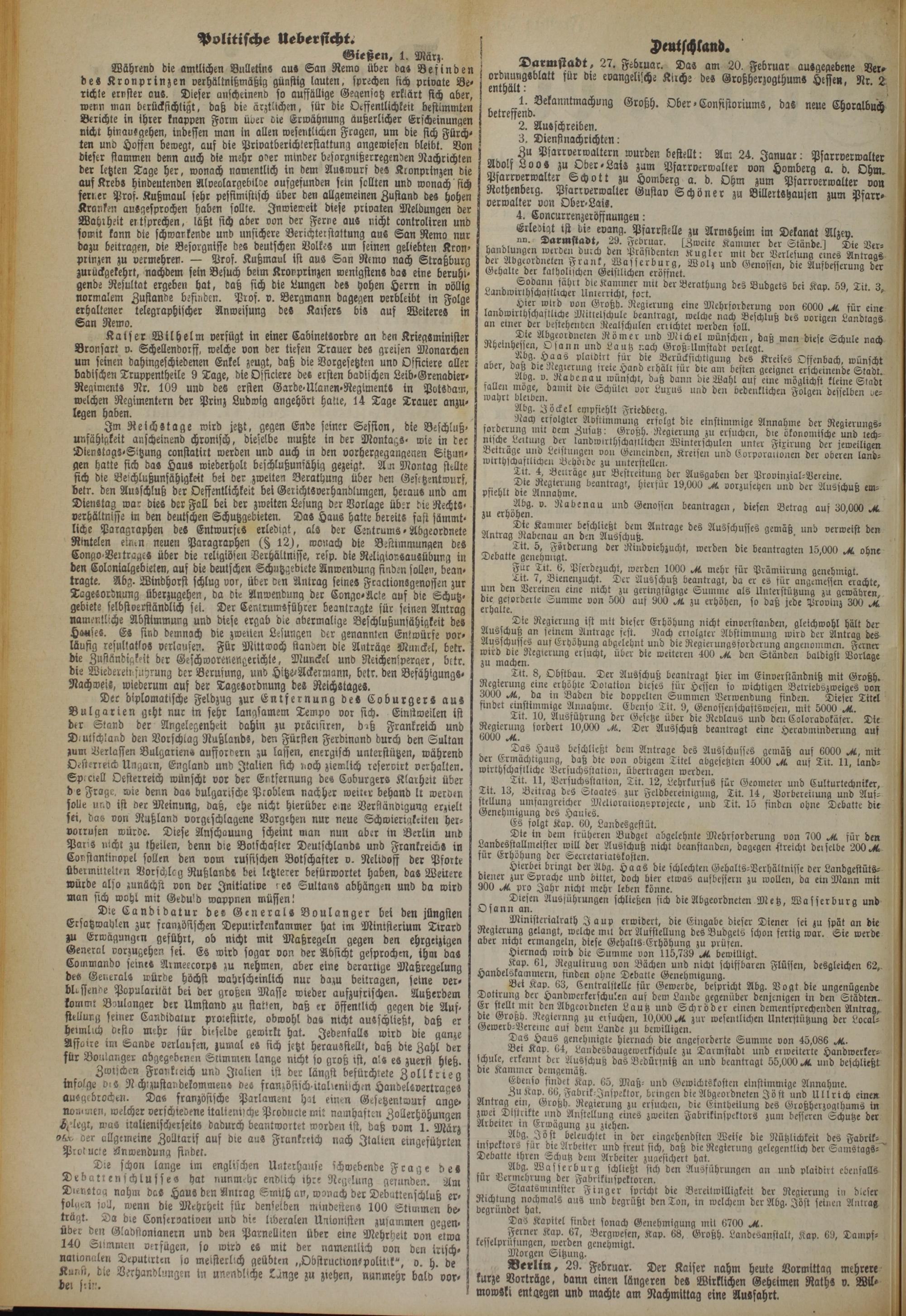 Darmstadt- 27. Februar. Das am 20. Februar ausgegebene Ver* ordnungsblatt für Die evangelische Kirche des Großherzogthums Hessen, Nr. 2 enthält: