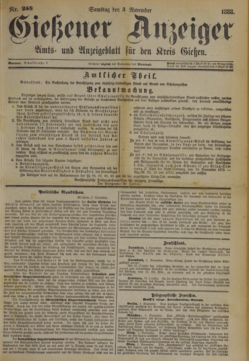 Amts- und Anzeigeblatt für den Kreis Gießen.