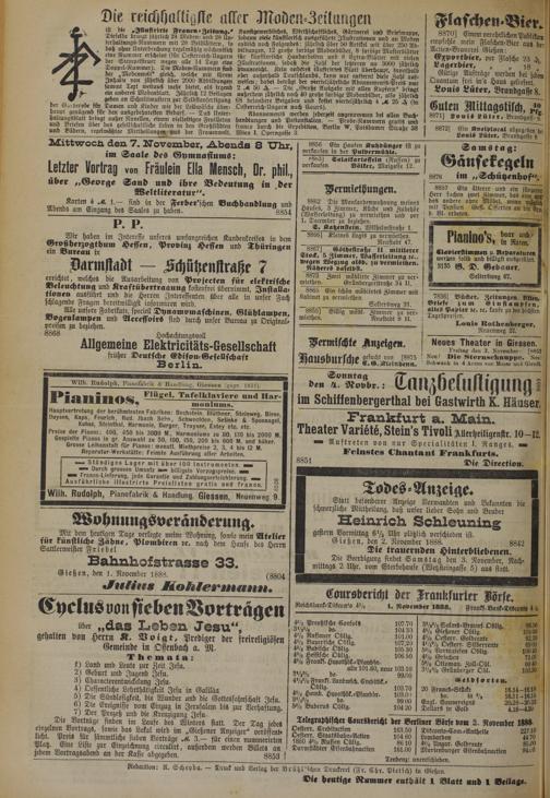 Die Vorträge finden int Laufe des Winters statt. Der Tag jedes einzelnen Vortrags, sowie das Lokal wird im „Gießener Anzeiger" oeröffenfr Wifi .sieben Vorträge JL 3.— für einen nummerirten