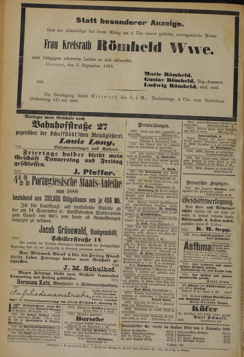 Giessen, den 3. September 1888.
