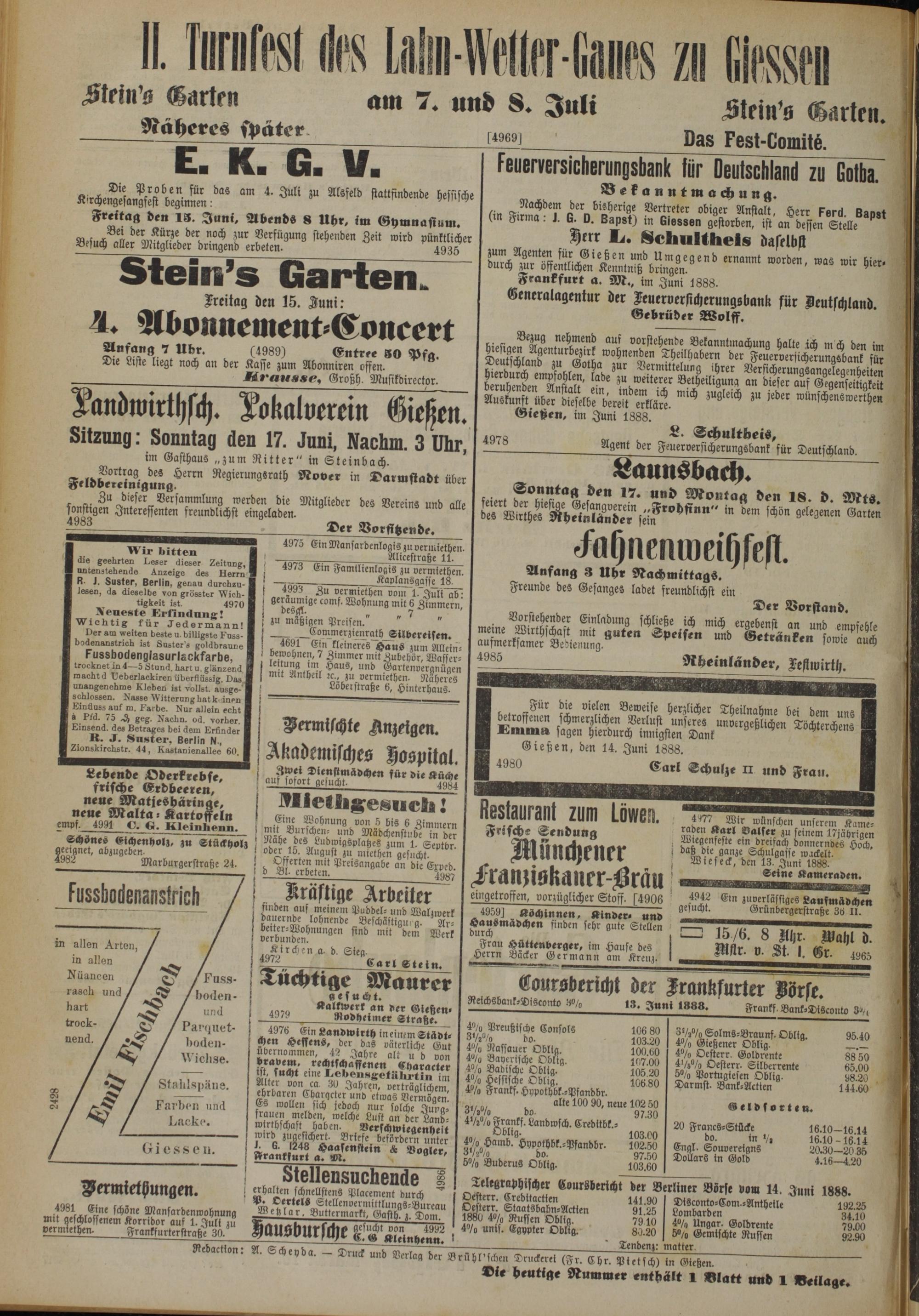 Gießen, den 14. Juni 1888.