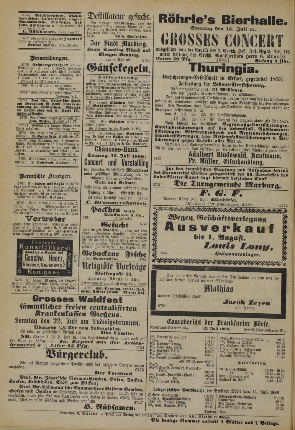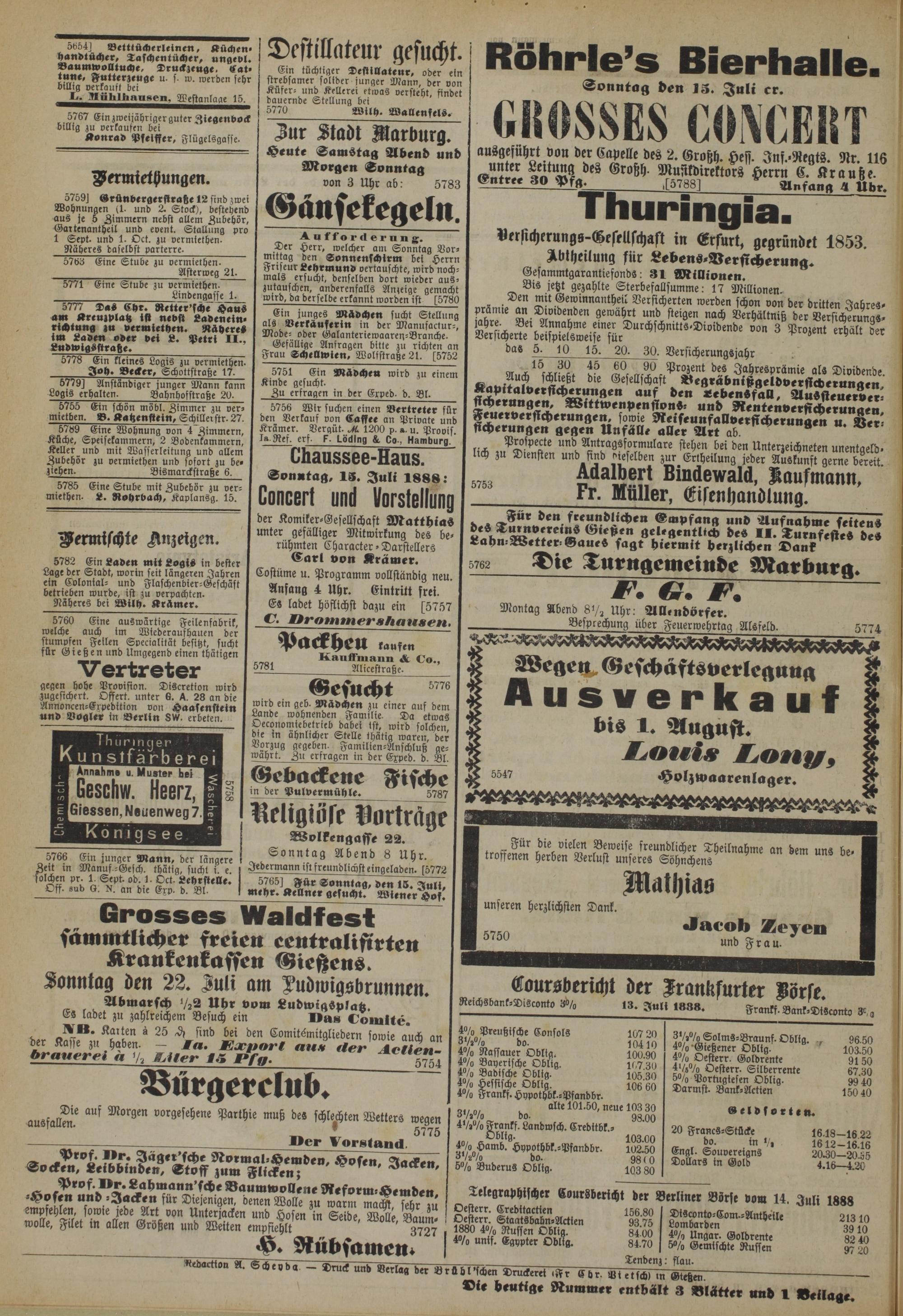 Reichsbank-Dis-ont- 3% IS. Juli >888. Franks. Bank-Di,conto 3< a