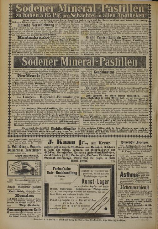 Redaction: A. Scheyda. — Druck und Verlag der Drühl'schen Druckerei (Fr. Ehr. Pietsch) tn Gießen. '