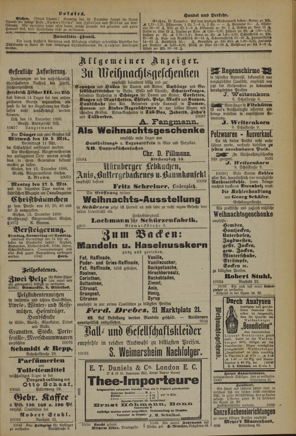 Gießen, 15. December 1888. Großherzogl- Bürgermeisterei Gießen. 10072____A. Bramm._________