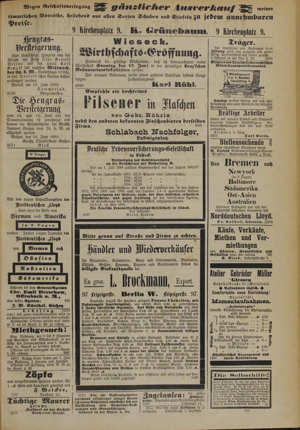 Gießen, den 16. Juni 1888.