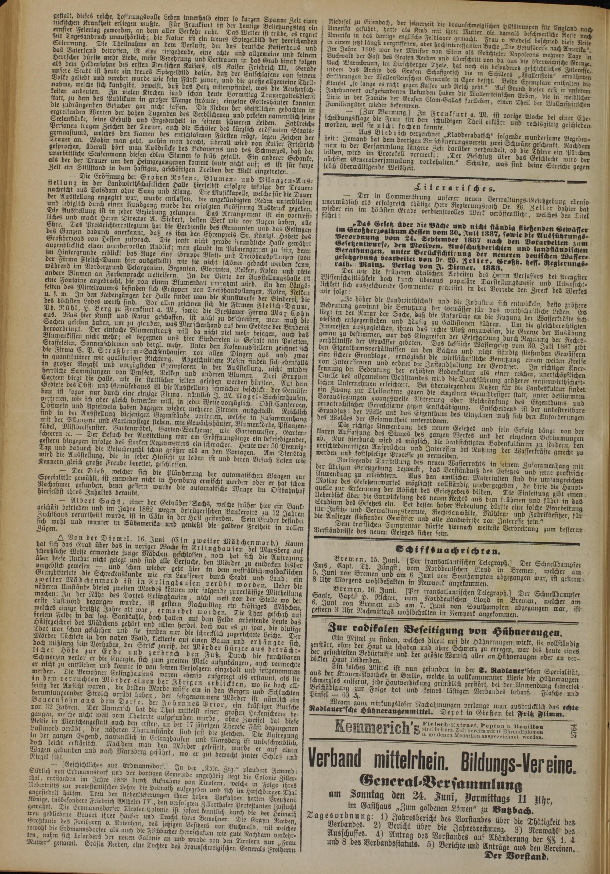 Seelenstärke, seine Geduld und Ergebenheit in seinem schweren Leiden Sablrei*, Personen tragen Zeichen der Trauer, auch bie Schüler des kürzlich eröffneten gymnasiums, welches den Namen des entschlafenen Fürsten trägt, legen strichen der ?,7rUn*an" i?°b<n tTa.n «°bt, wohin man horcht, überall wird von Kaffer Friedrich ÄÄ fllera[“ bort ?°u Ausdrücke des Bedauerns und des Schmerzes hast der r» kb ‘ Srofmmann diesen edlen Stamm so früh gefällt. Ein anderer Ged k b-r Trauer um den Heimgegangenen kommt heute nicht au" es st für kurze Seit ein L-tillstand in dem hastigen, geschäftigen Treiben der Welt eingetreten * ’ » i, Eröffnung der Groben Rosen-, Blumen- und SBftan»cn-S