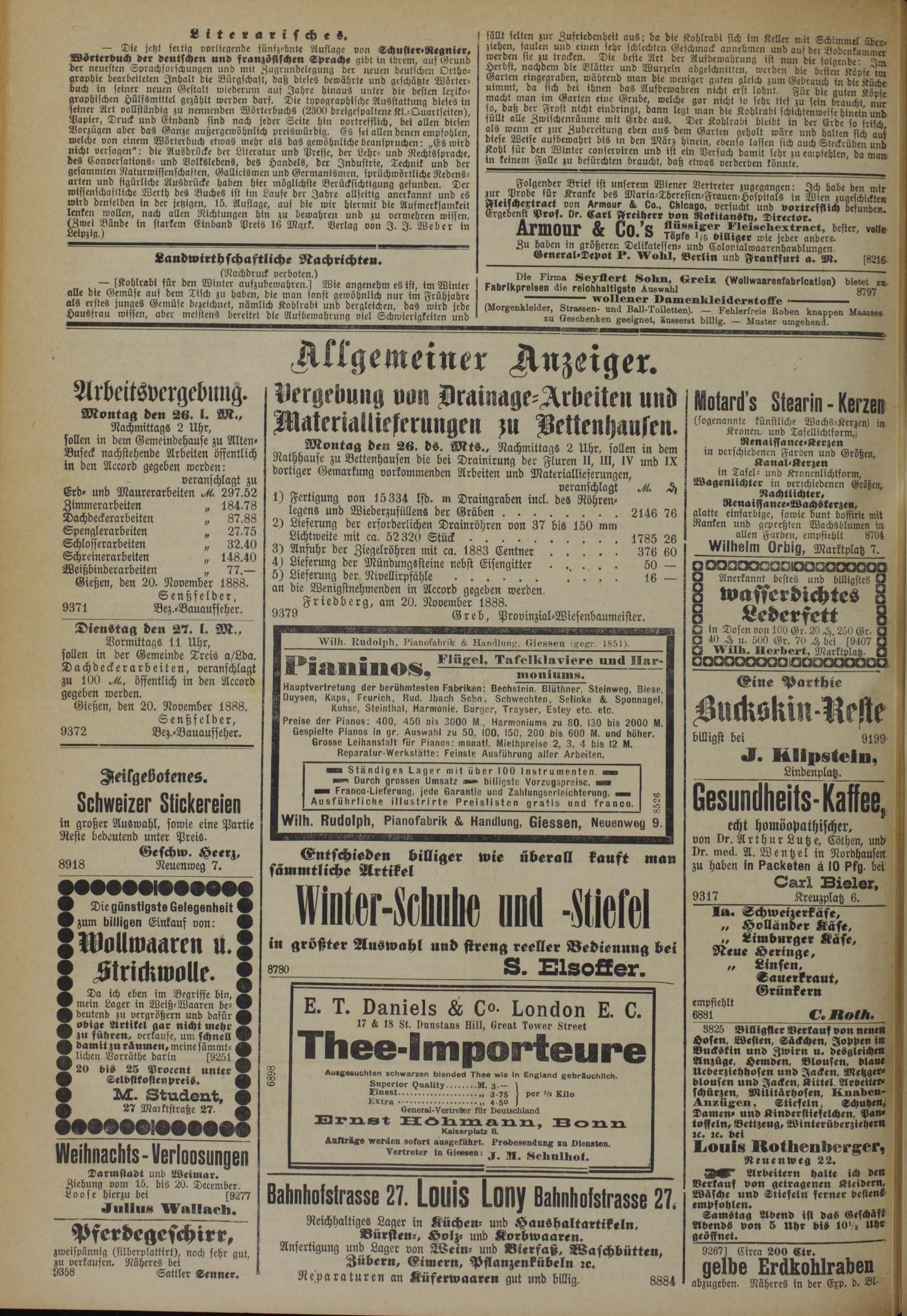 Gießen, den 20. November 1888. Senßfelder, 9372 Bez.-Bauausseher.