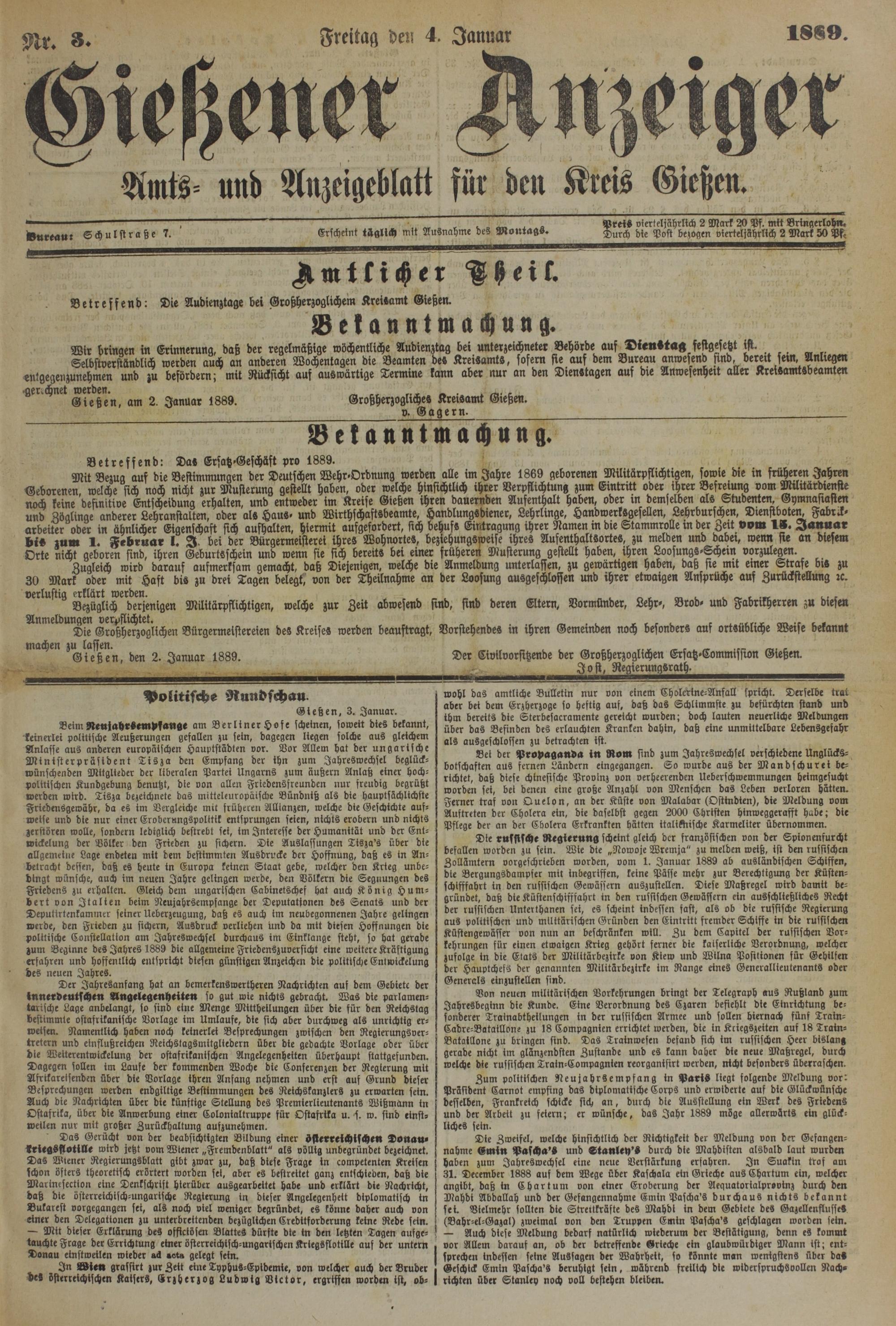 Gießen, am 2. Januar 1889.