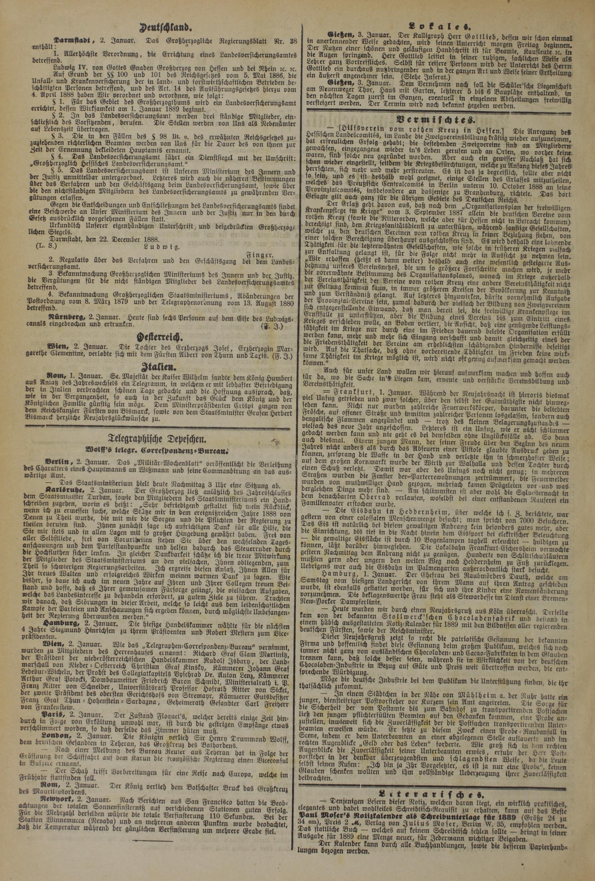 Darmstadt, 2. Januar. Das Grobherzogliche Regierungsblatt Nr. 38 enthält: