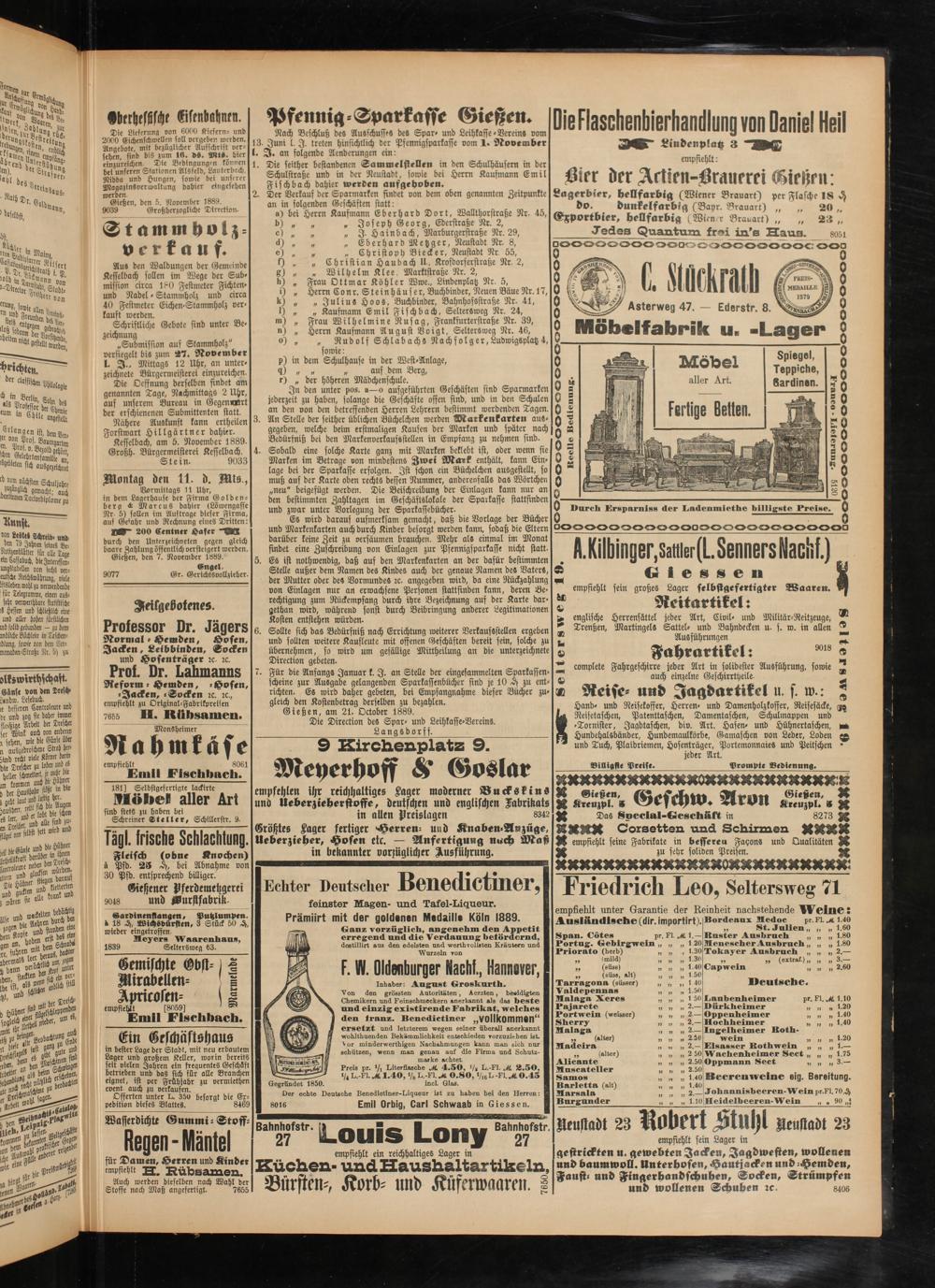Gießen, den 5. November 1889. 9039 Großherzogliche Direction.