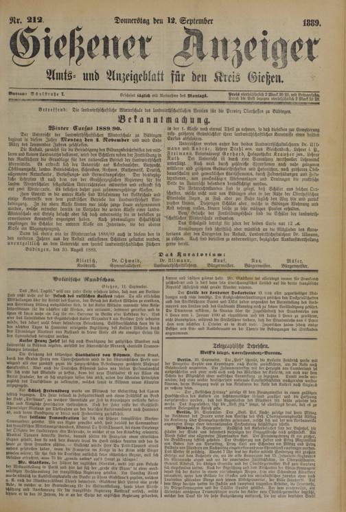 Amts- und Anzeigeblatt für den Kreis Gießen.