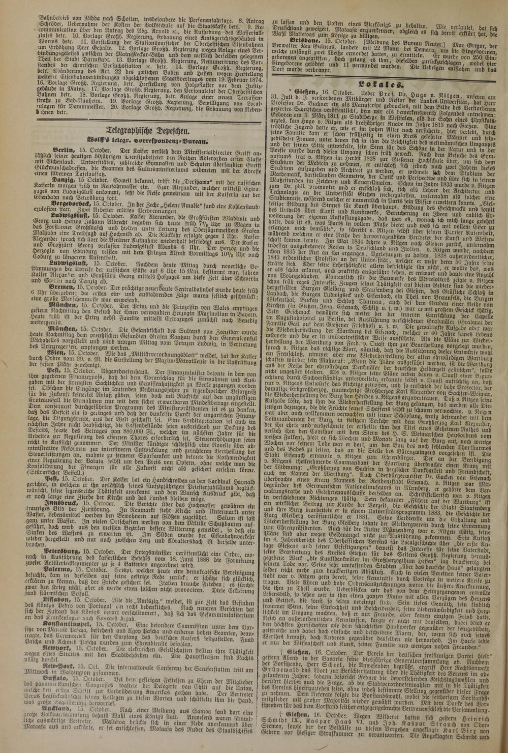 , , Palermo, 15. October. Crispt, welcher heute eine demokratische Vereiniauna beuchte, kam in derselben aus feine gestrige Rede zurück; er schätze sich glücklich9 ^klaren zu können, dag der Friede gesichert sei. Italien brauche Flieden es stirchte N stürmischenEsall^^ roCrbe dnen Elchen nicht provociren. Diese Erklärulig s «».YÄ'SZi; V. äü &Ä «assaff-■b-8 »• >-« «-ä£ r. 15» October. Eine besondere Commission unter dem gtnr-