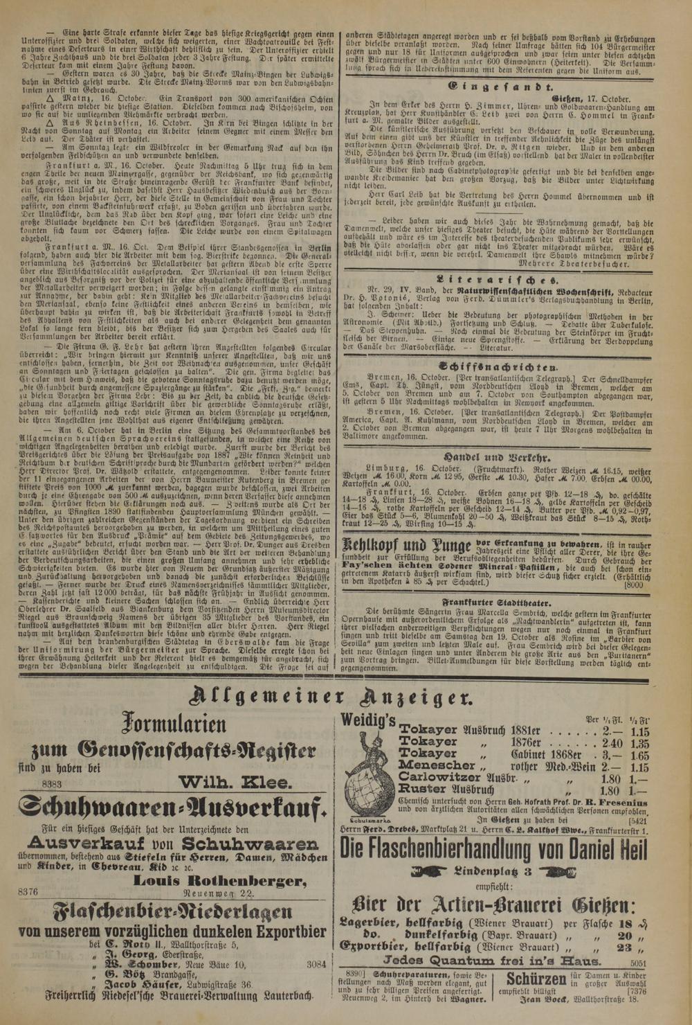 (x. c „ . . o Gießen, 17. October.