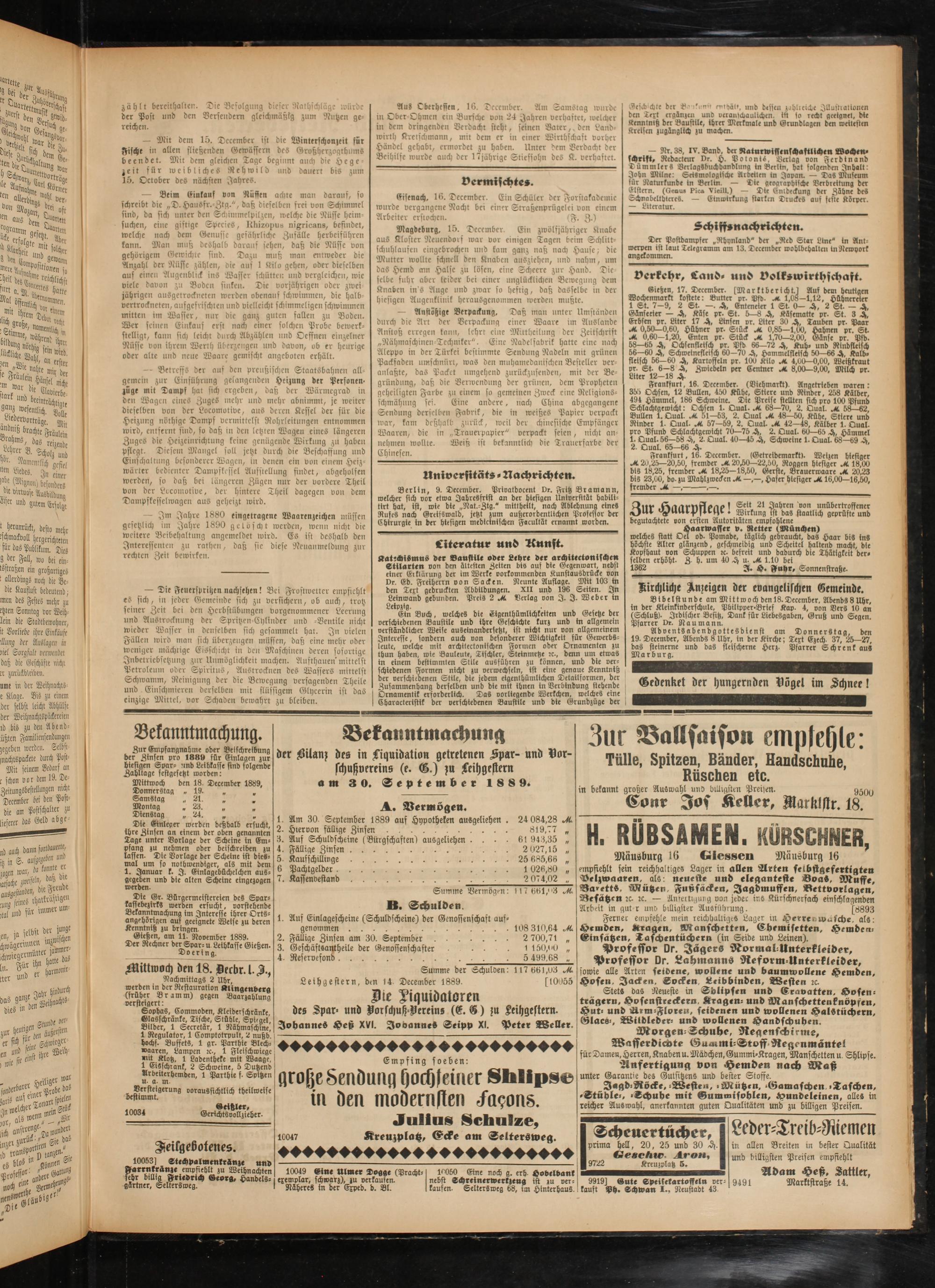 Leihgestern, den 14 December 1889. [10055